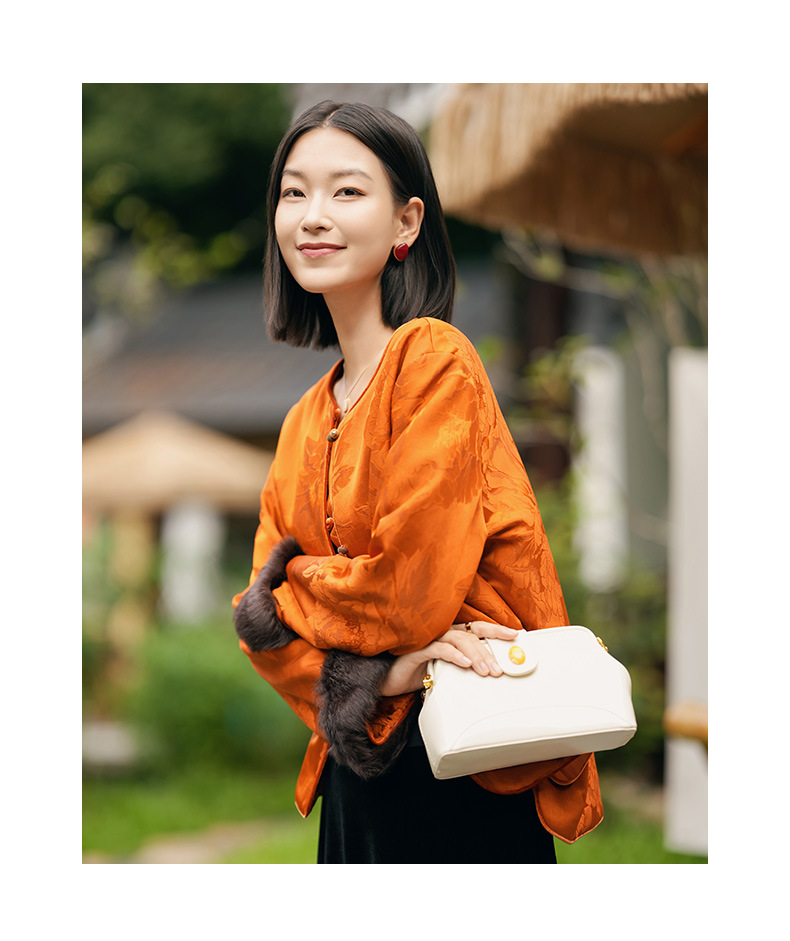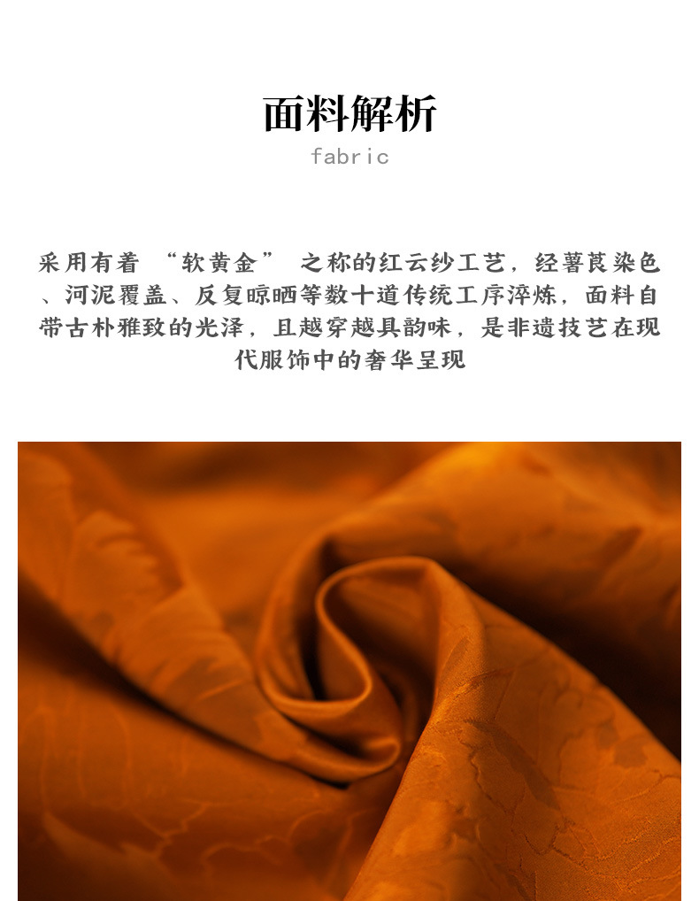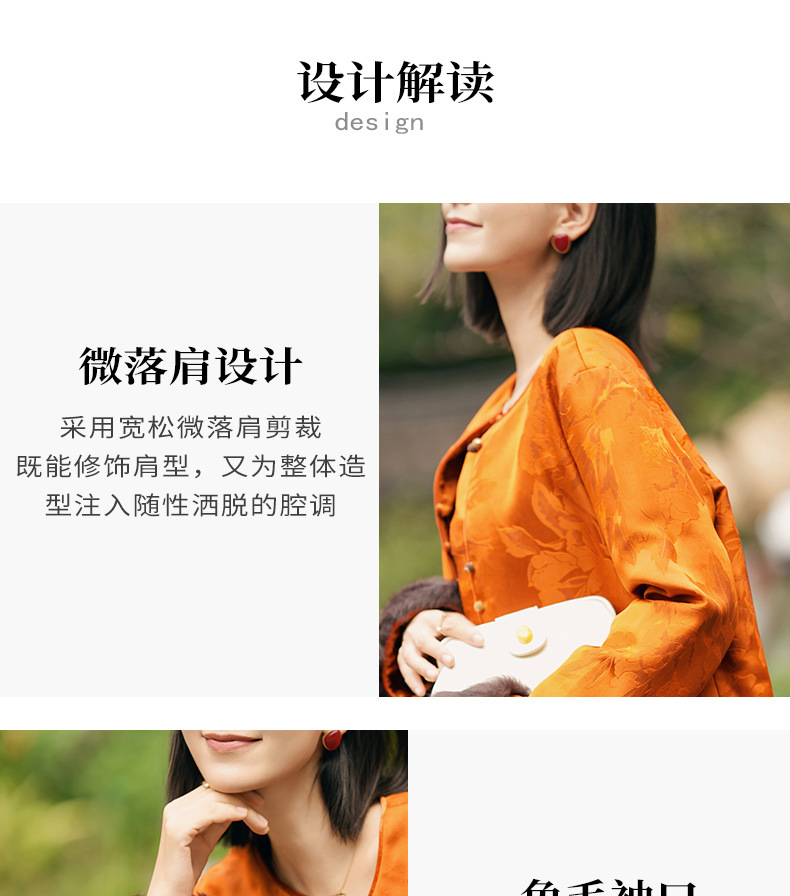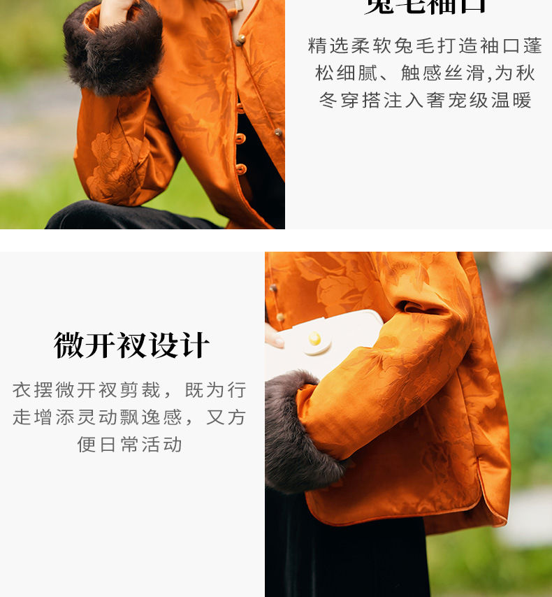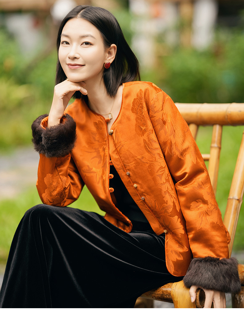 OPH F4660-A红云纱-45姆米桑蚕丝真丝提花棉衣外套拼袖口兔毛 商品图3