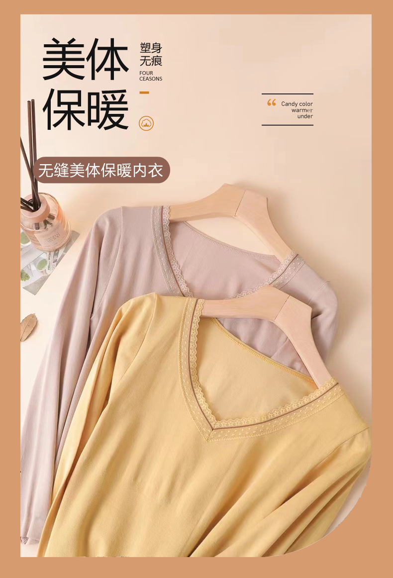 RY-RY1918秋冬无缝美体保暖内衣套装女士修身时尚打底秋衣秋裤套装