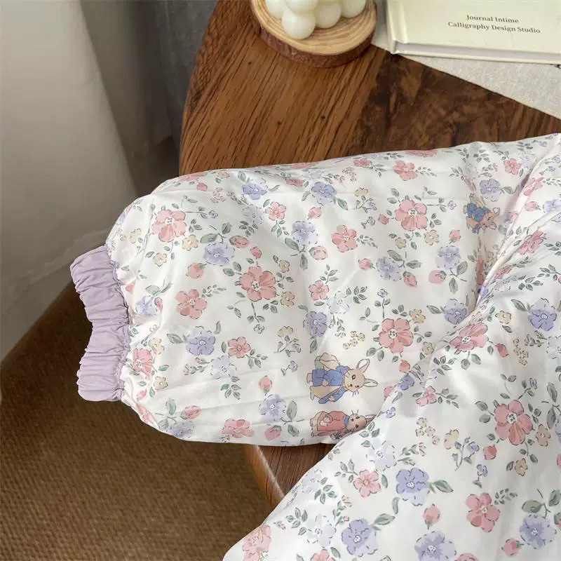 【亲肤安全材质❗️时尚可爱百搭】女童加厚外套两面可穿2025新款韩版宝宝洋气碎花休闲加棉连帽棉服。jc