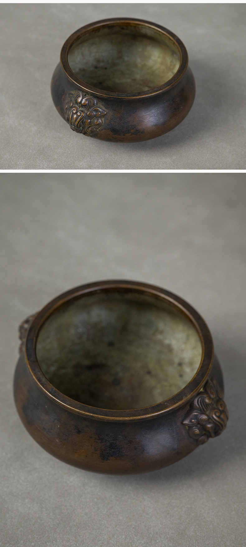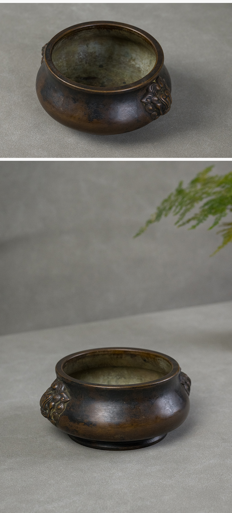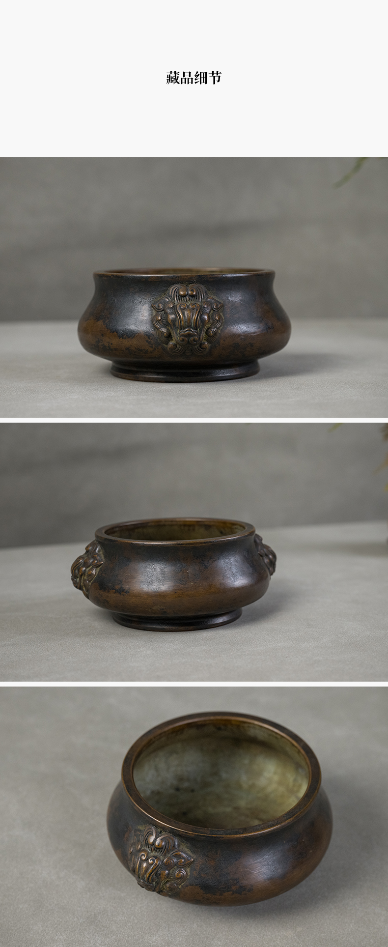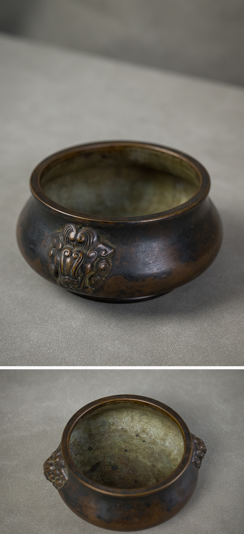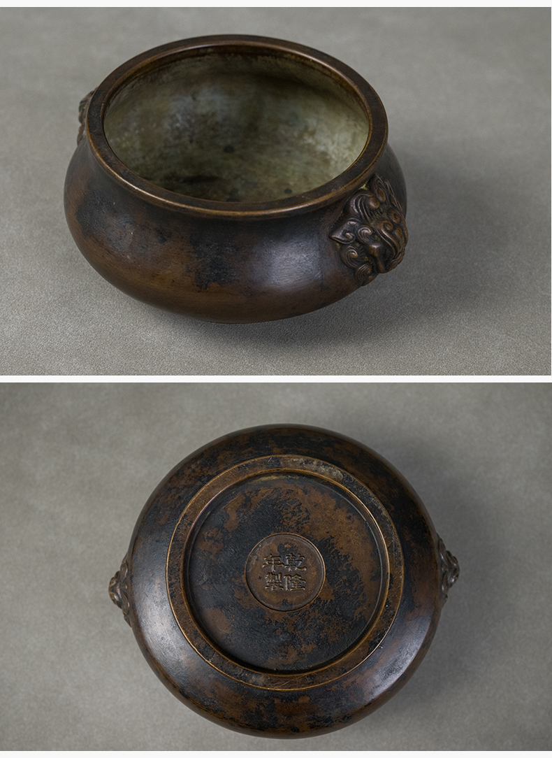 清 沈景修款端石狮纹辟雍砚(红木天地盖)