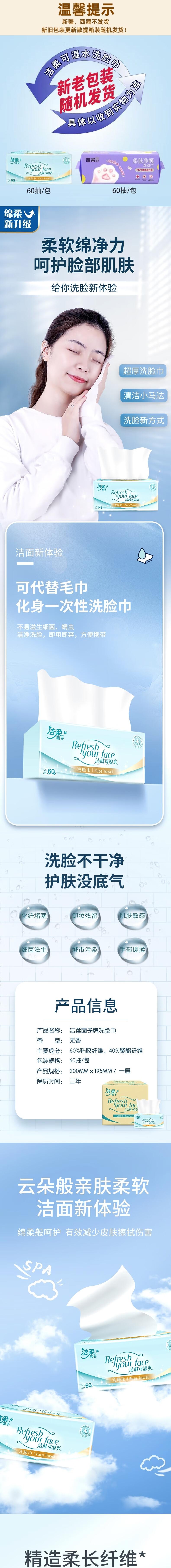 洁柔 棉柔洗脸巾60抽*3包 JJR60-03B