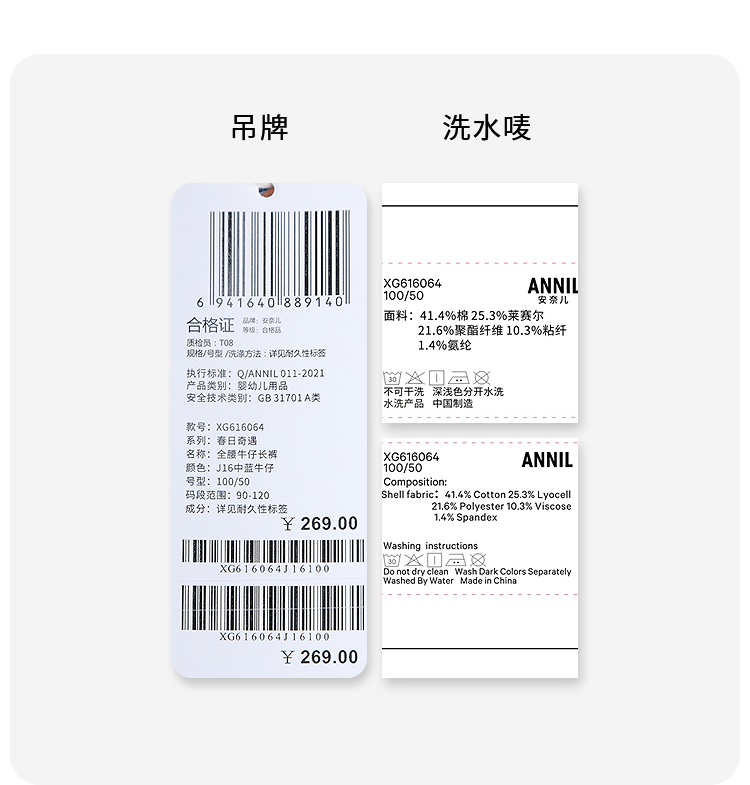 【实体店同款】女童全腰牛仔长裤春季新款安奈儿童装XG616064