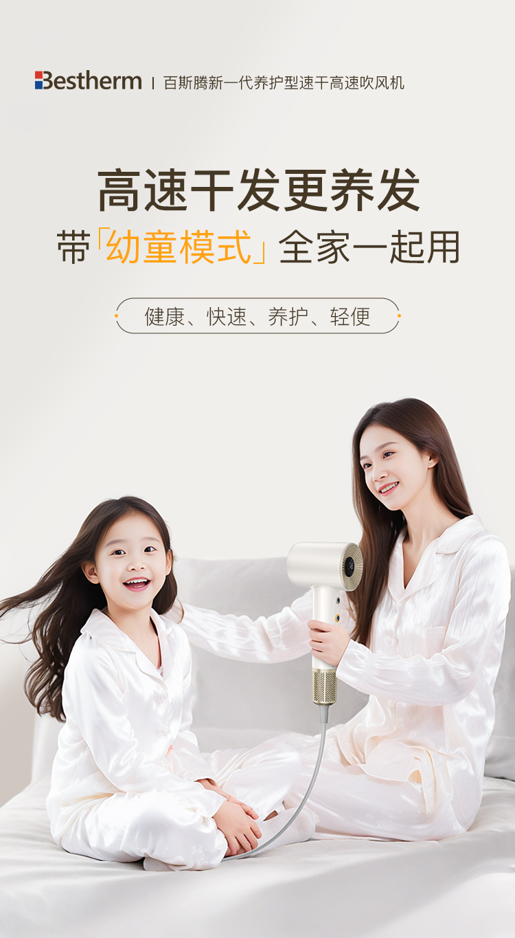 「吹得快!」百斯腾高速吹风机智能感温快速吹风机 瀚哲