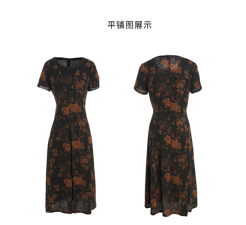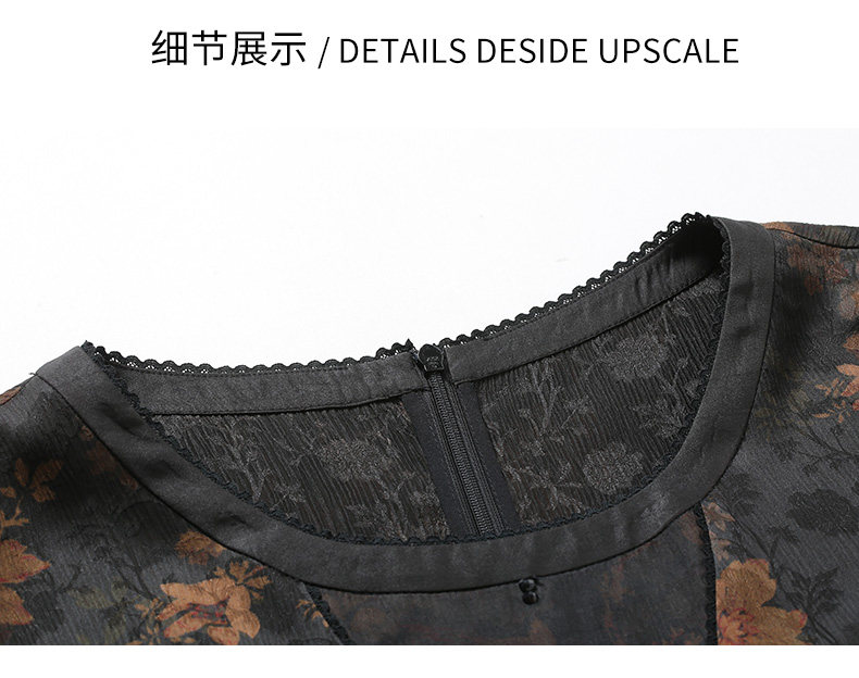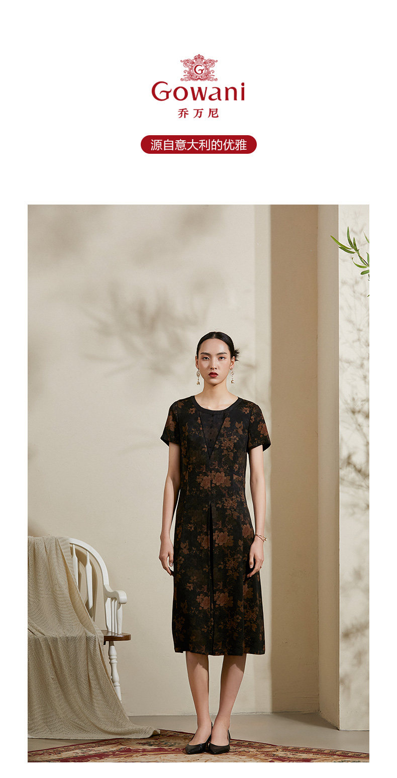【雅韵牡丹花】【香云纱】乔万尼重磅真丝连衣裙气质流行短袖桑蚕丝长裙ES2E116