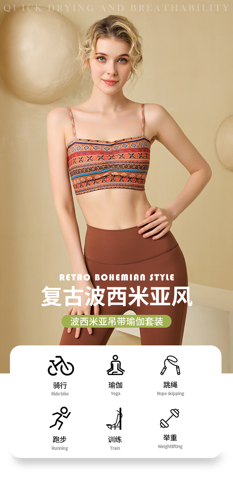 【126元任选2件】跃牌【漫西】系列 波西米亚风吊带运动文胸女带胸垫健身瑜伽内衣聚拢胸罩抹胸Y219+Y156