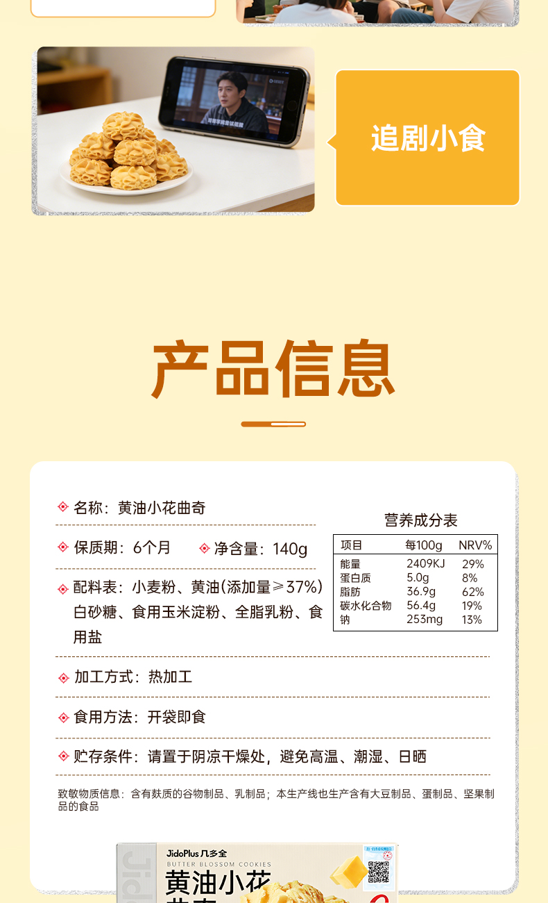 【鲜食】几多全黄油小花曲奇140g/盒 香酥可口