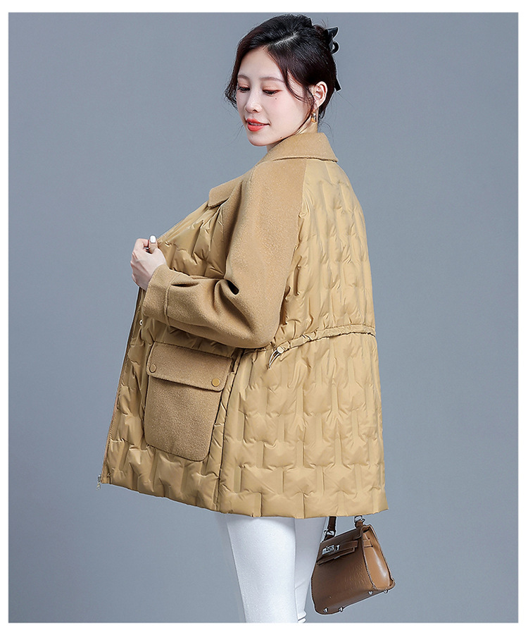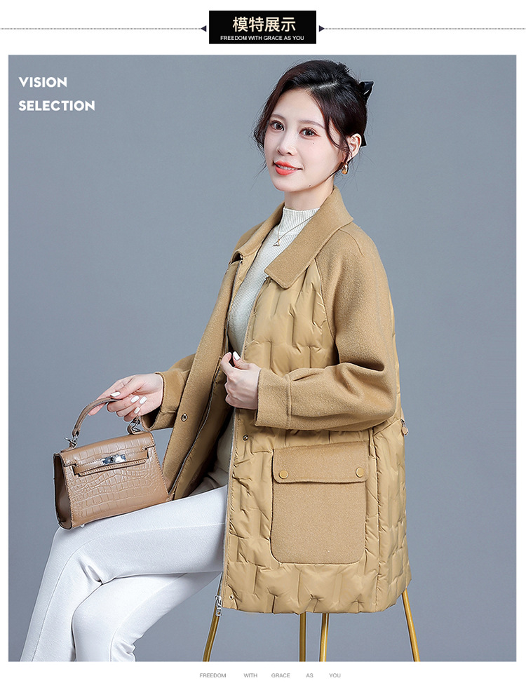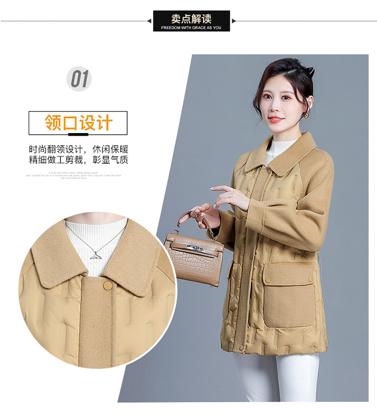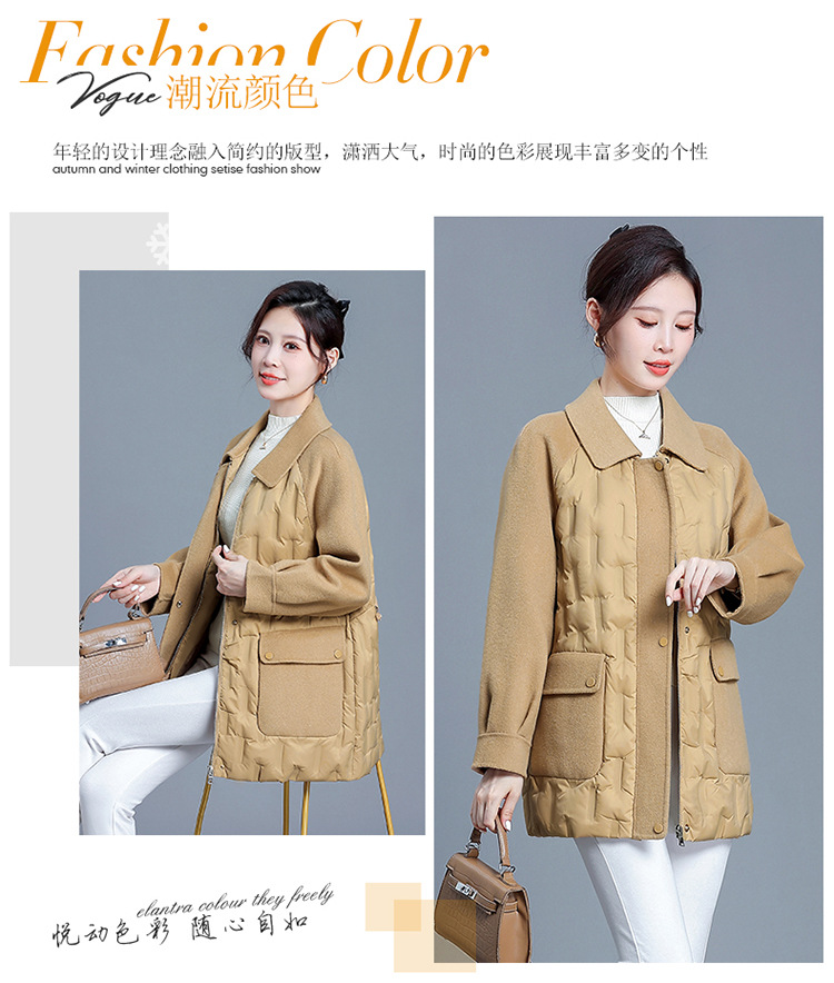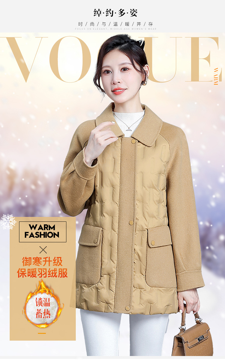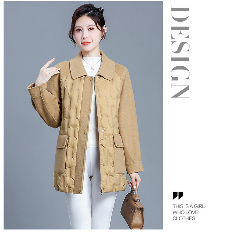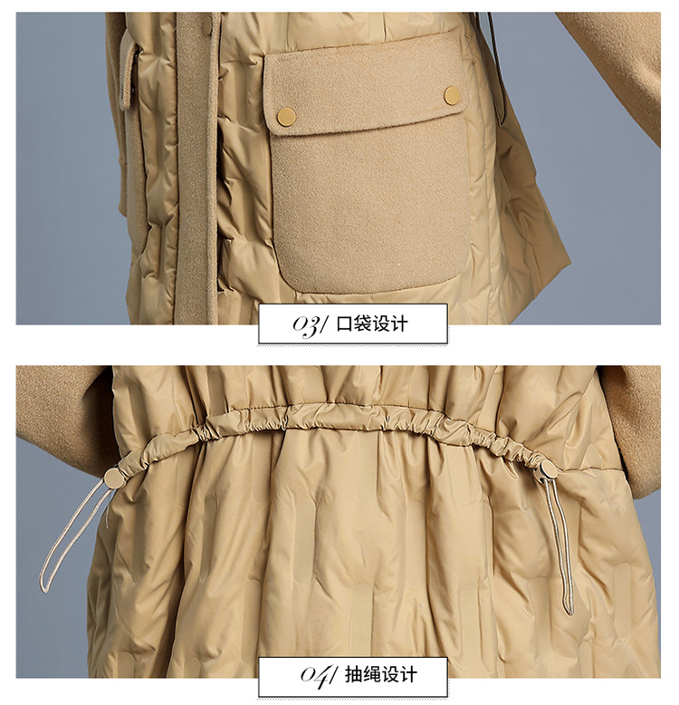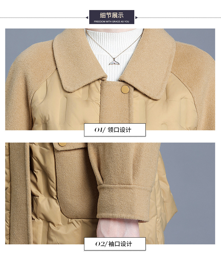 冬季新款,双面呢料拼接羽绒服时尚女装羊毛呢外套宽松休闲外套QYM-KED-S036-Y