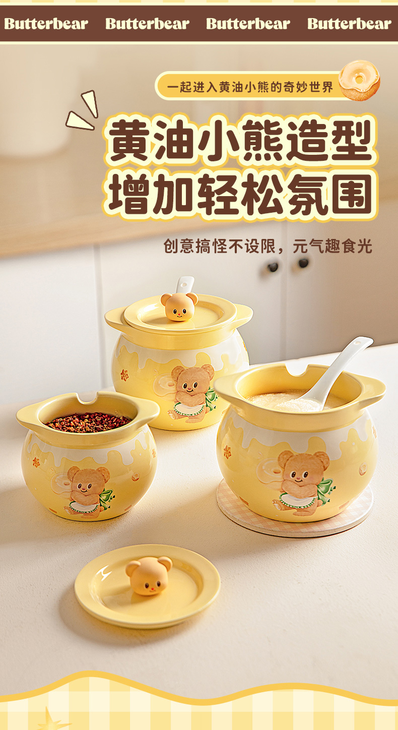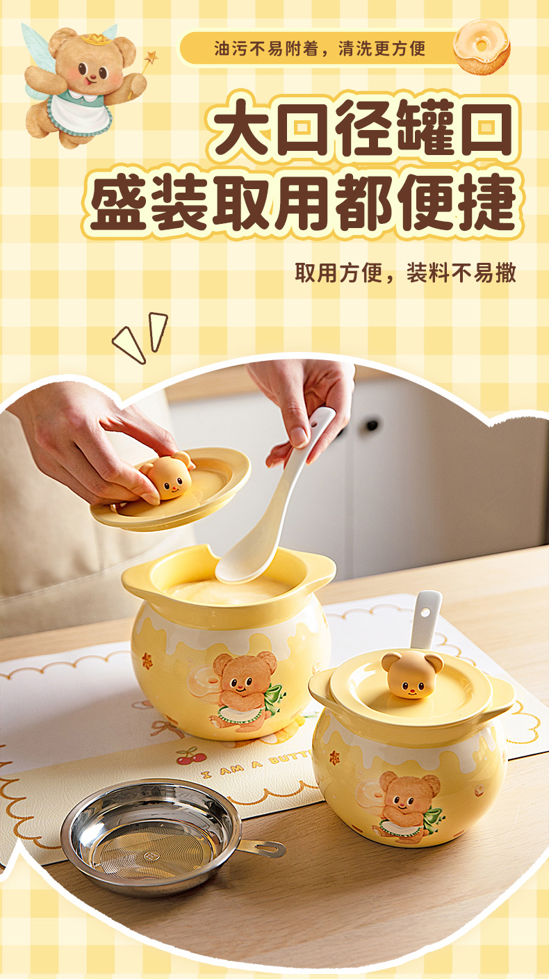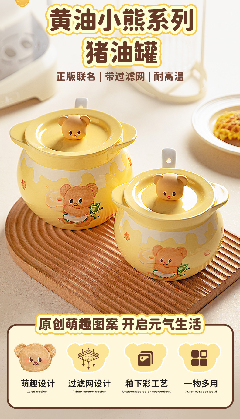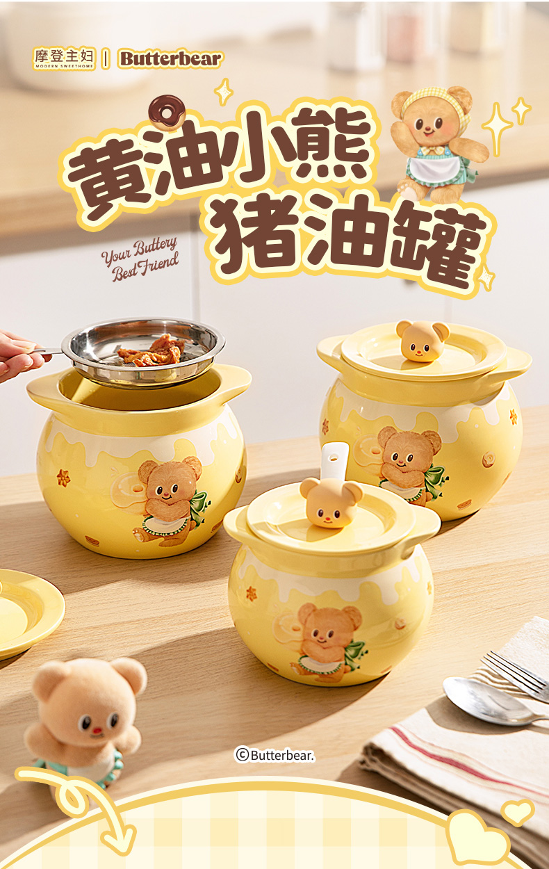 摩登主妇&黄油小熊猪油罐家用陶瓷耐高温辣椒油荤油专用罐子