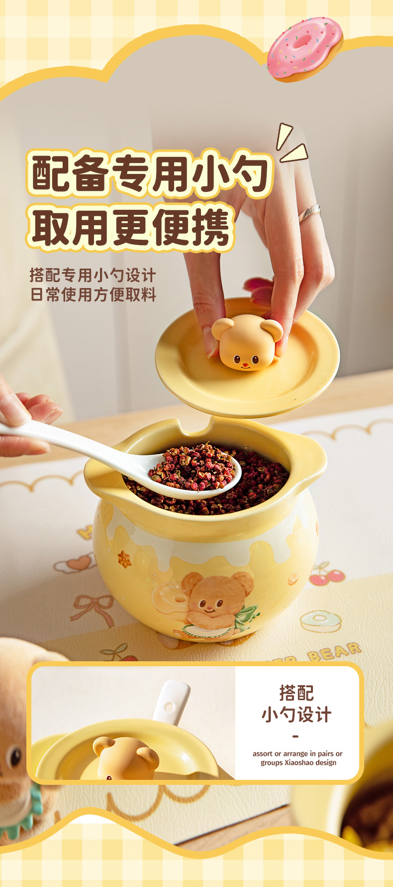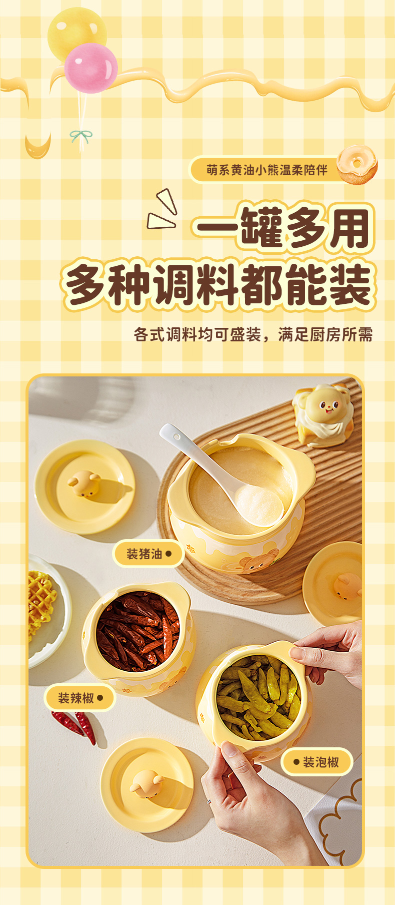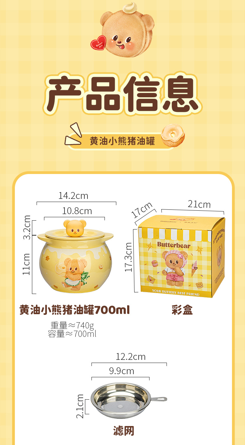 摩登主妇&黄油小熊猪油罐家用陶瓷耐高温辣椒油荤油专用罐子