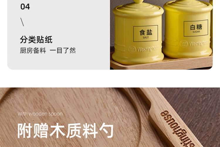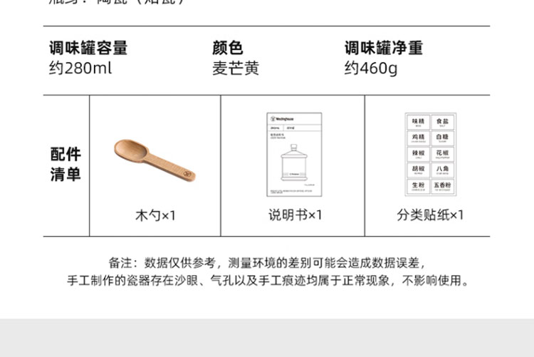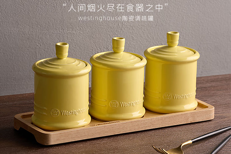 杞冠臻选 | 西屋Westinghouse 陶瓷调味罐 调料瓶赠木勺 麦芒黄色 280ml*1个或3个一组 百年品牌