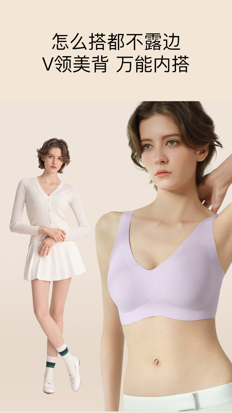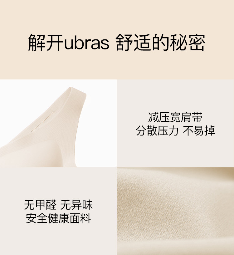 ubras虞书欣同款 粉底液内衣 无尺码V领文胸-后V背心款A-C杯UU1134211/UU1154012