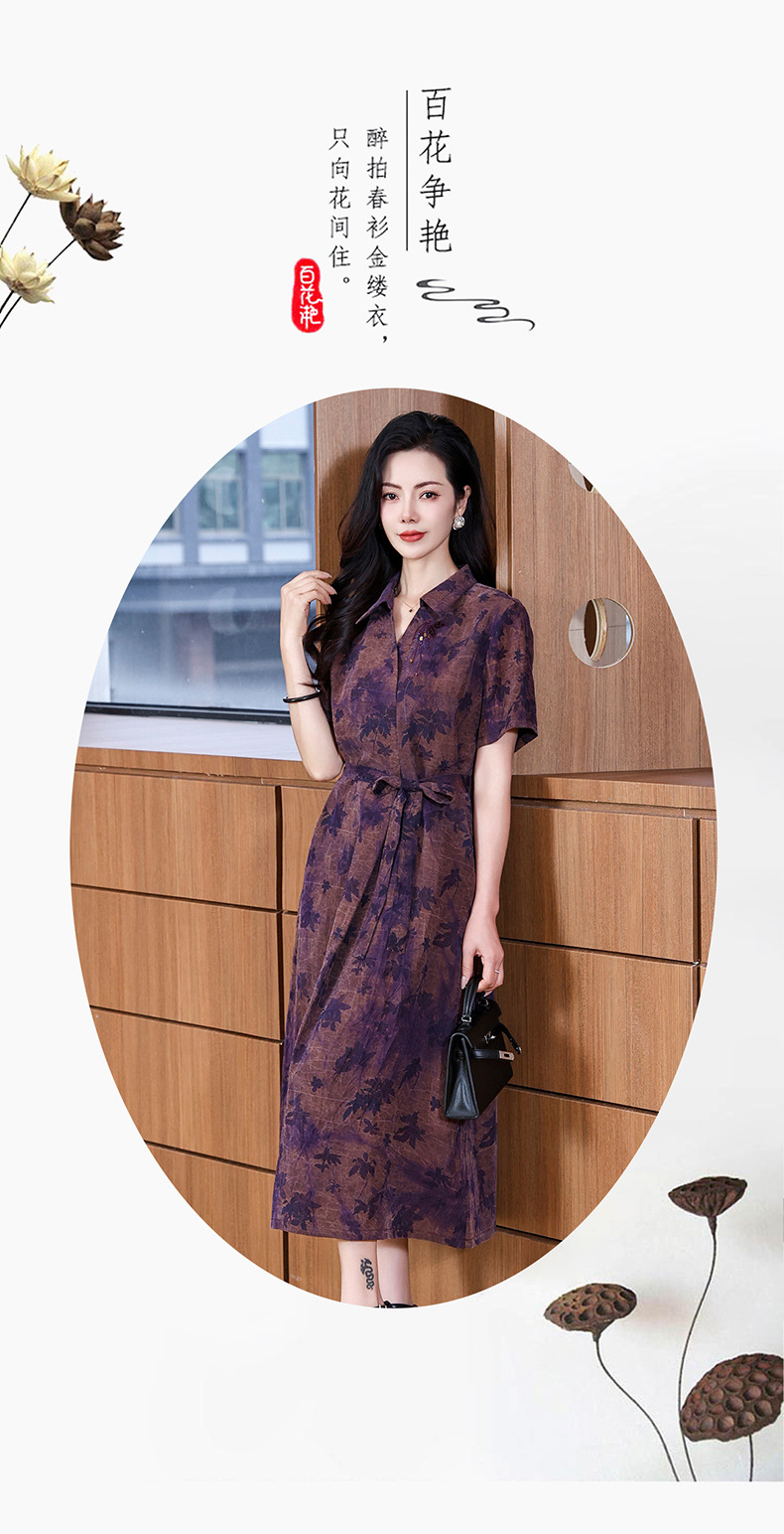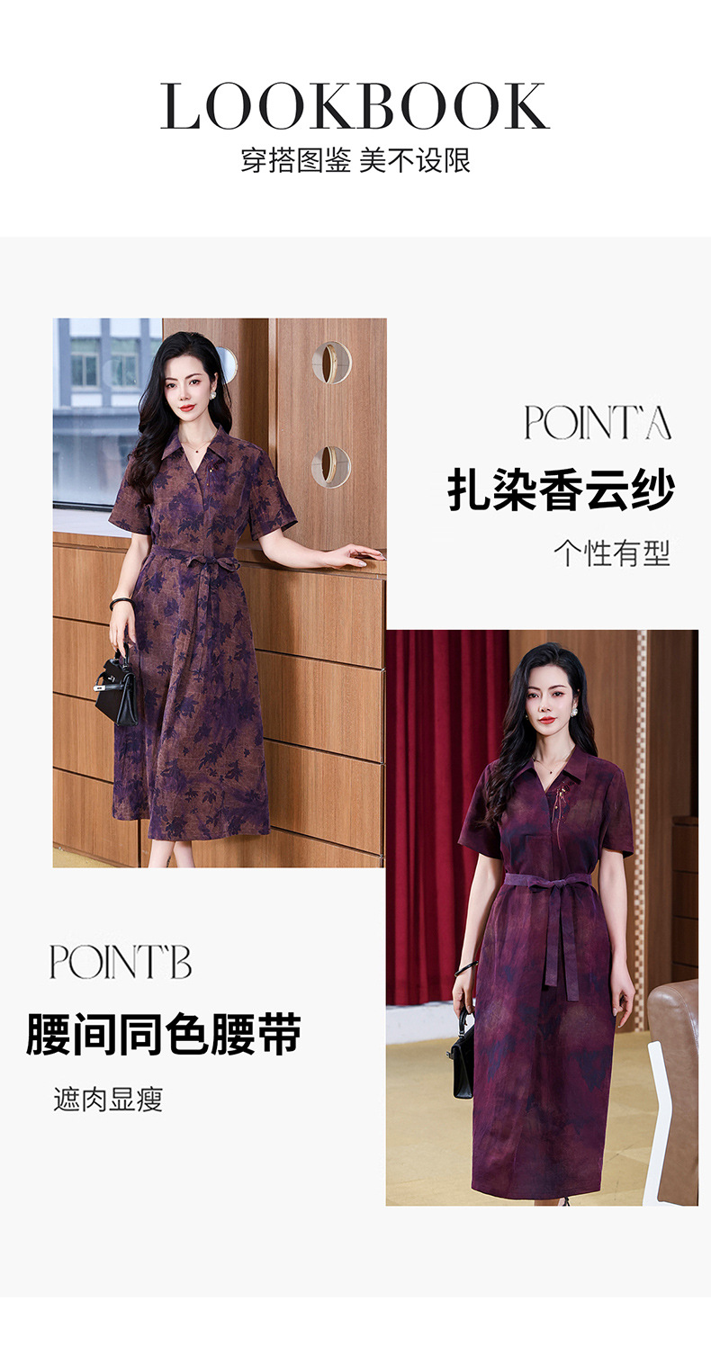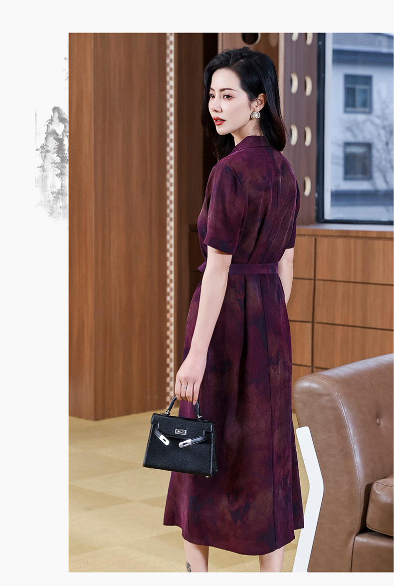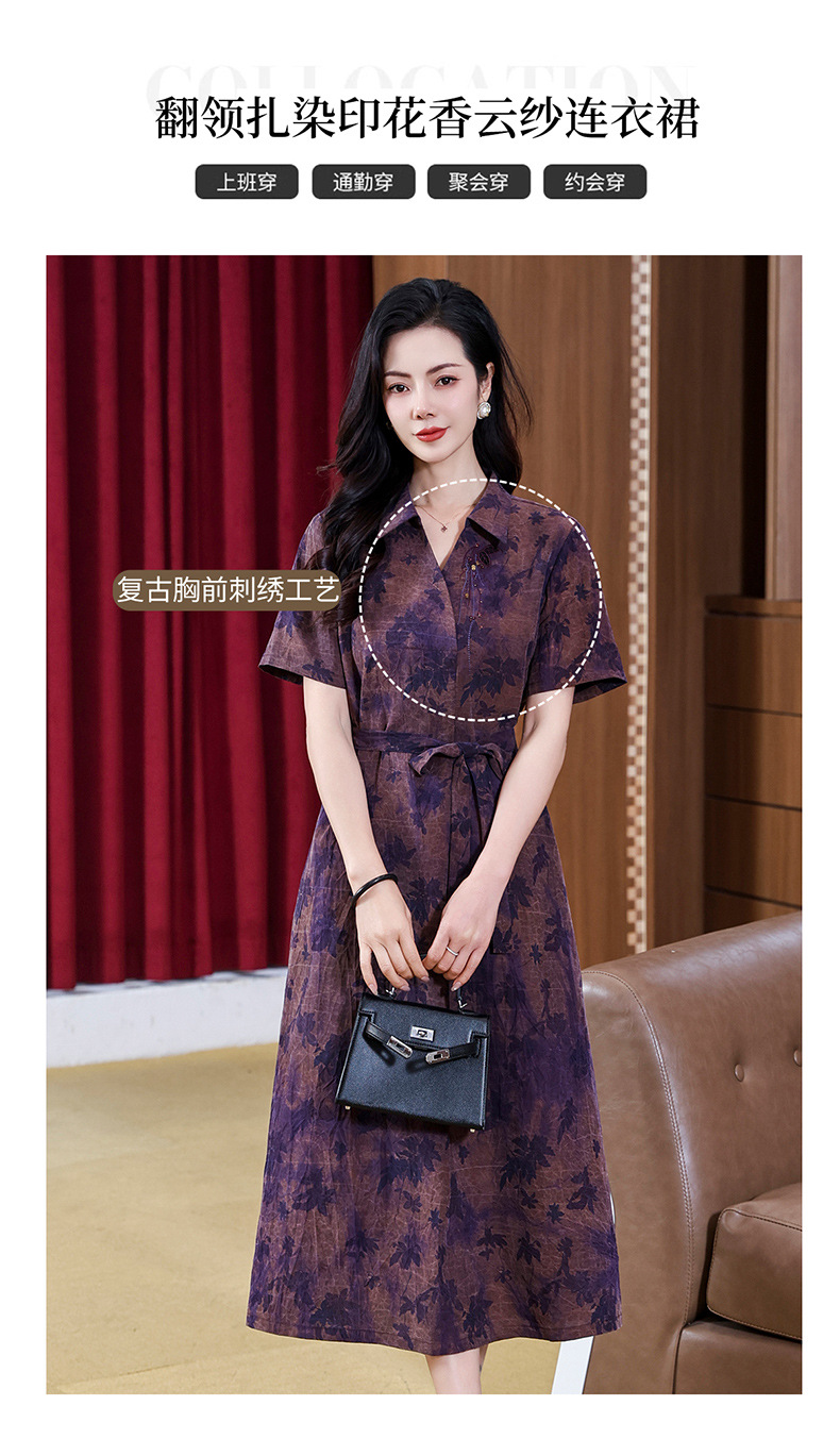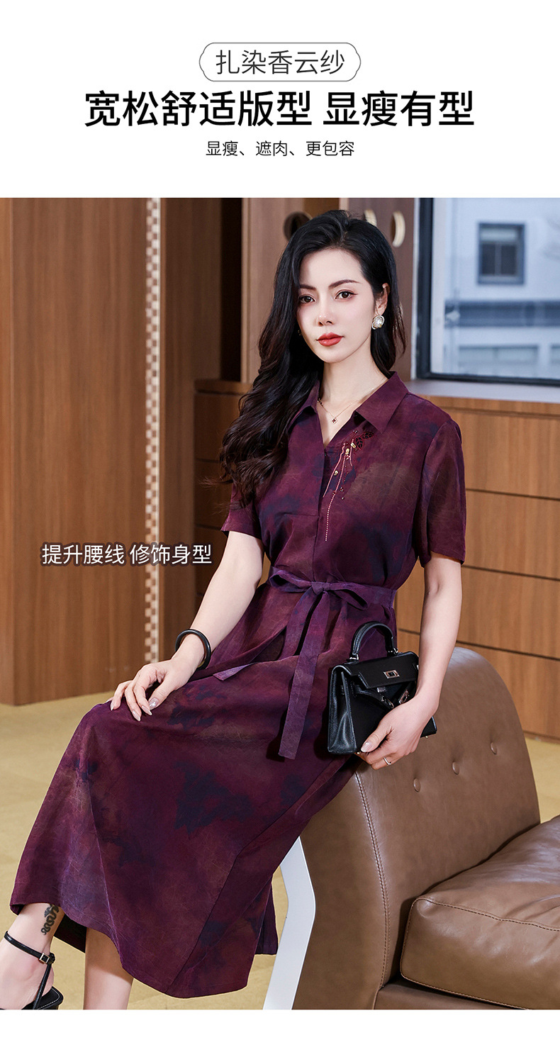 丁摩扎染香云纱连衣裙女新款衬衫领印花桑蚕丝系带真丝裙AL221878