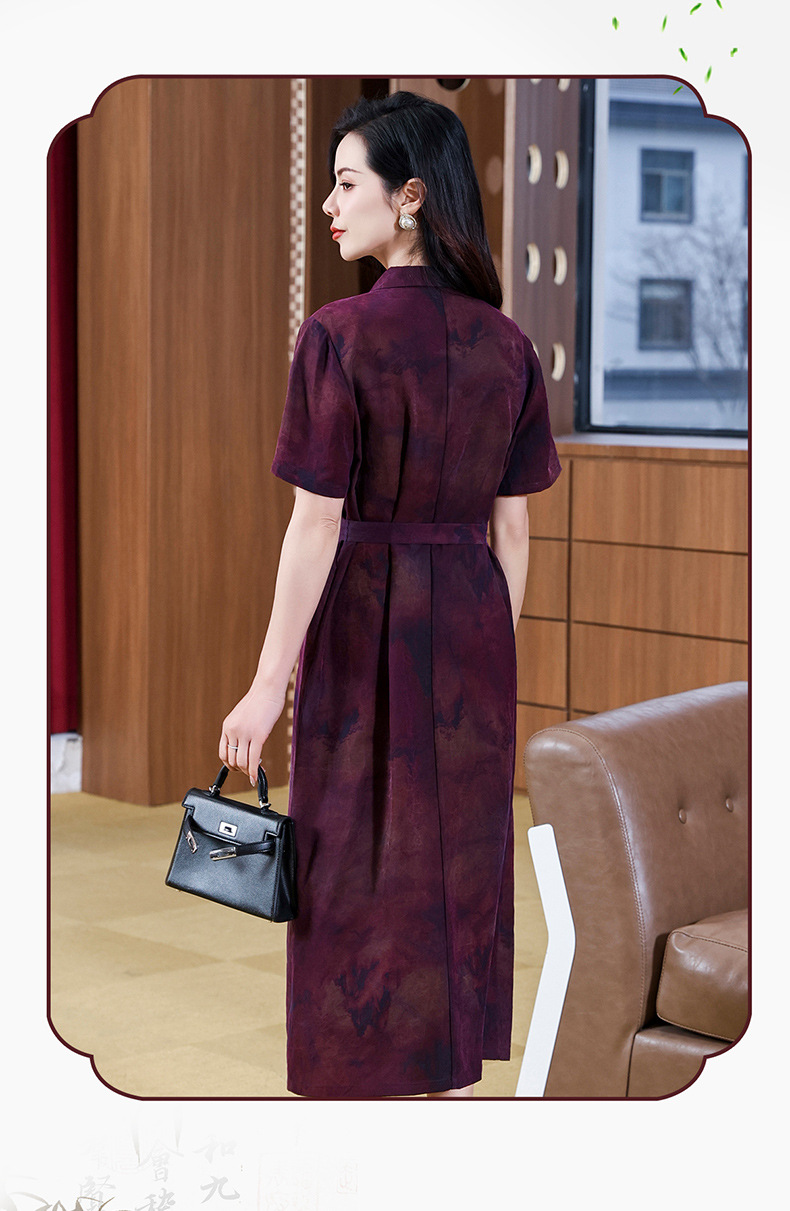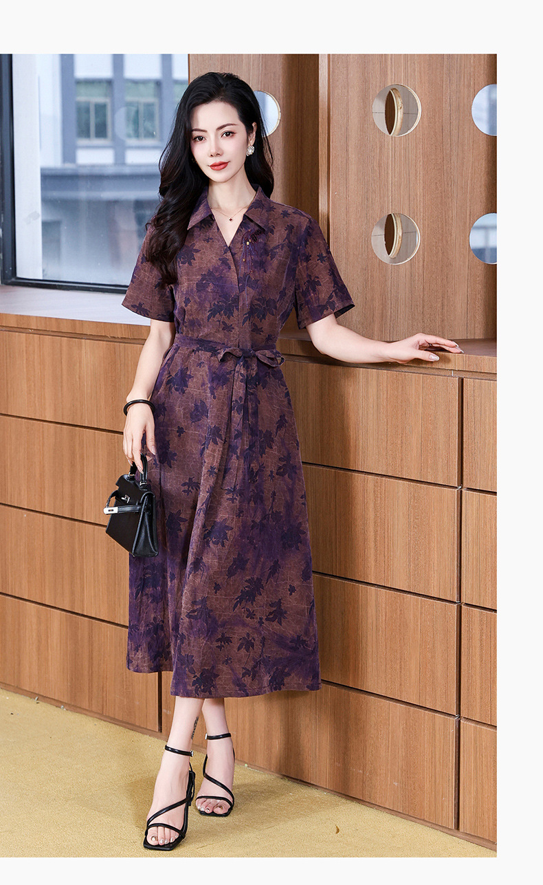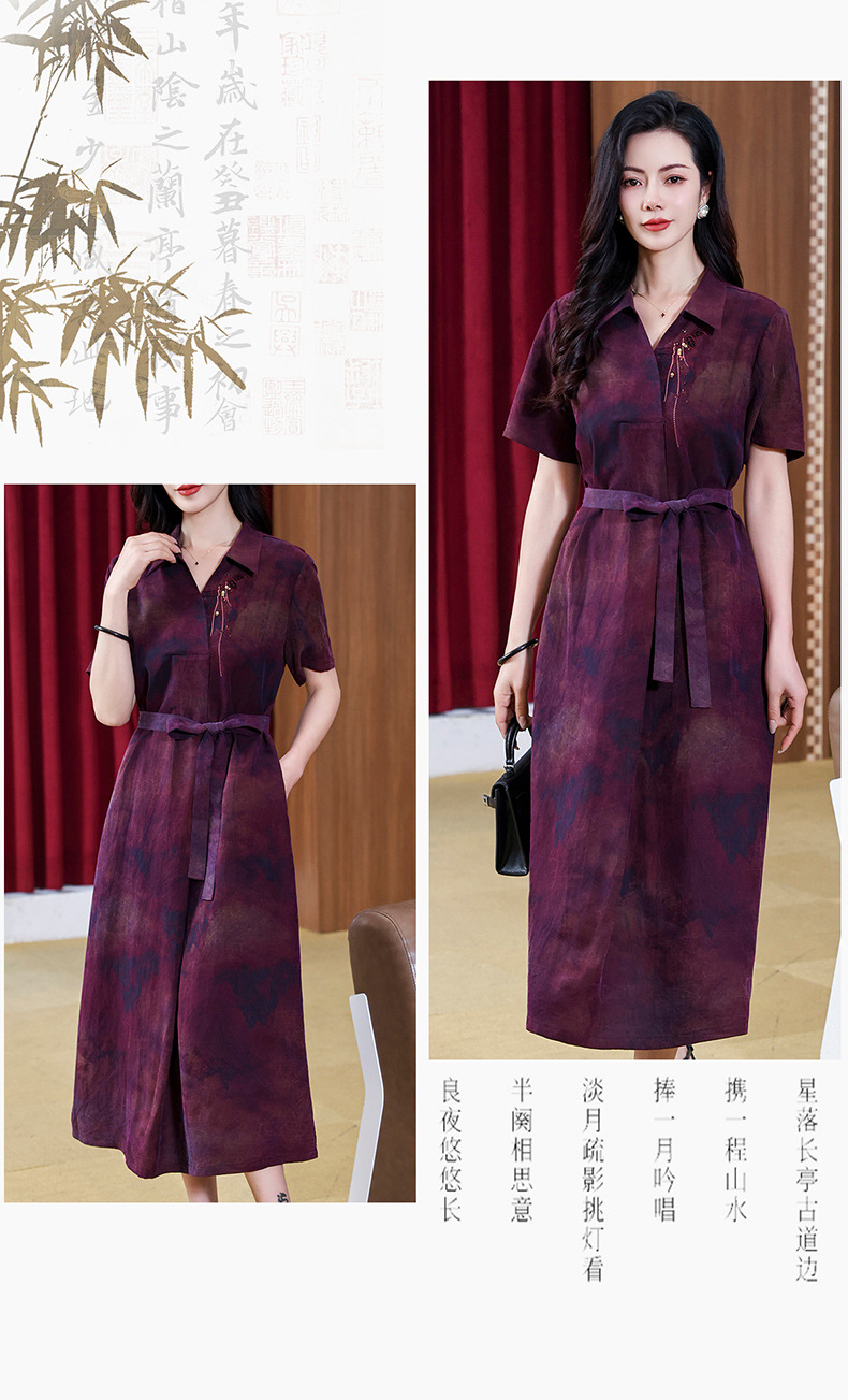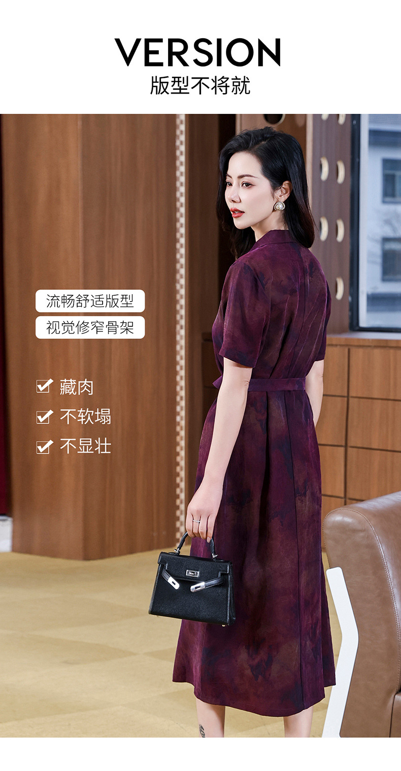 丁摩扎染香云纱连衣裙女新款衬衫领印花桑蚕丝系带真丝裙AL221878
