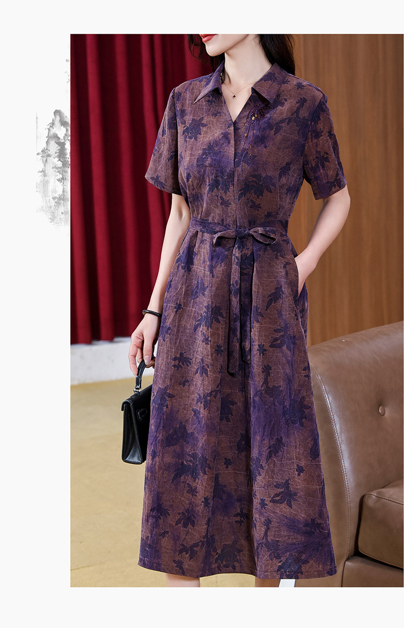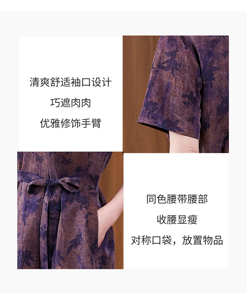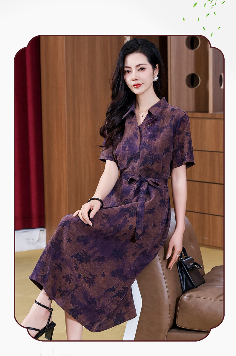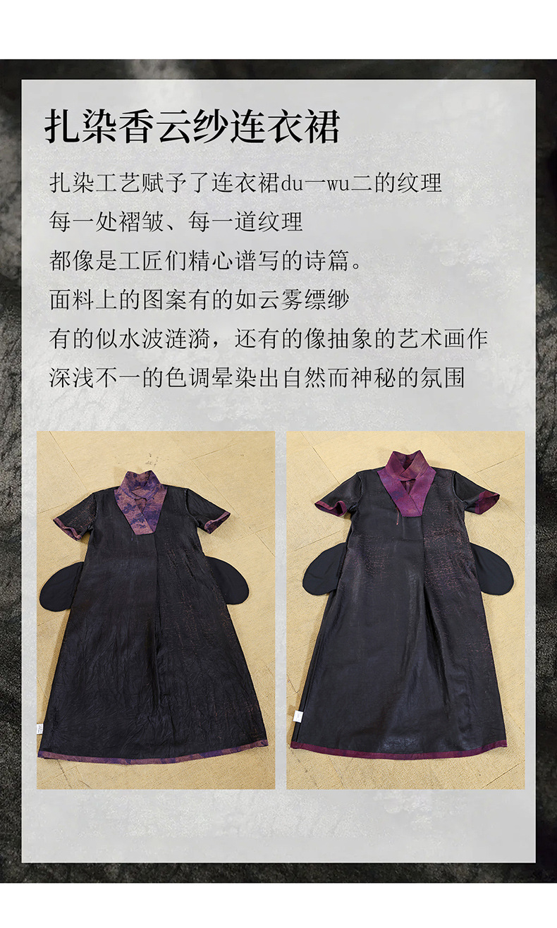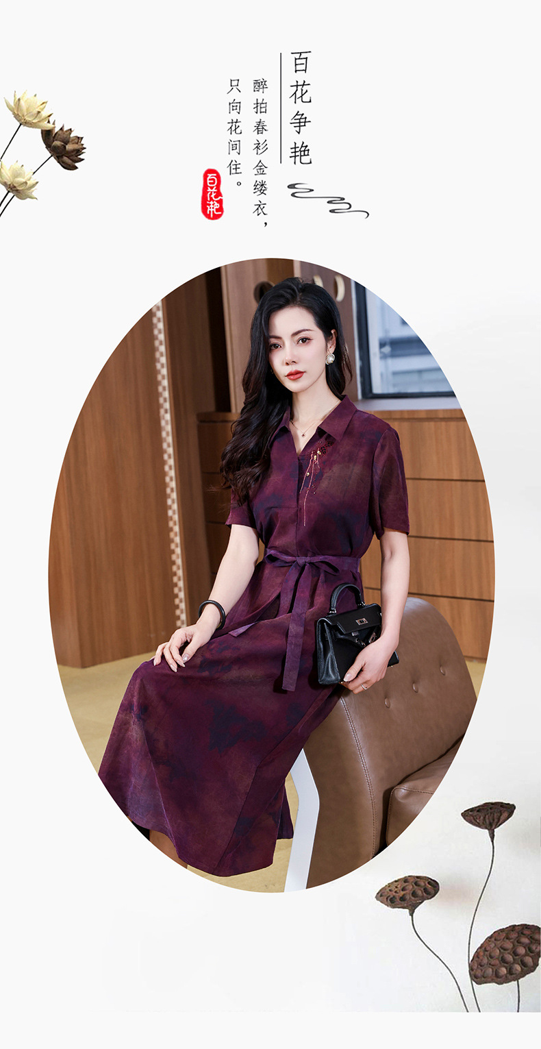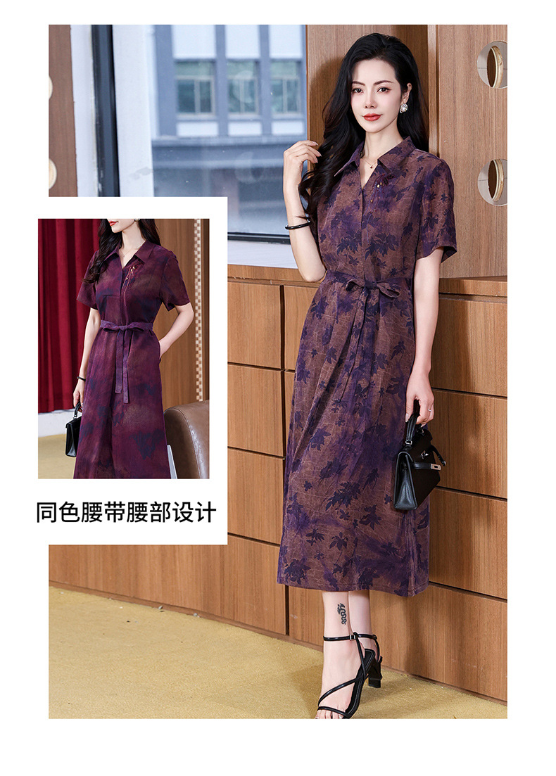 丁摩扎染香云纱连衣裙女新款衬衫领印花桑蚕丝系带真丝裙AL221878