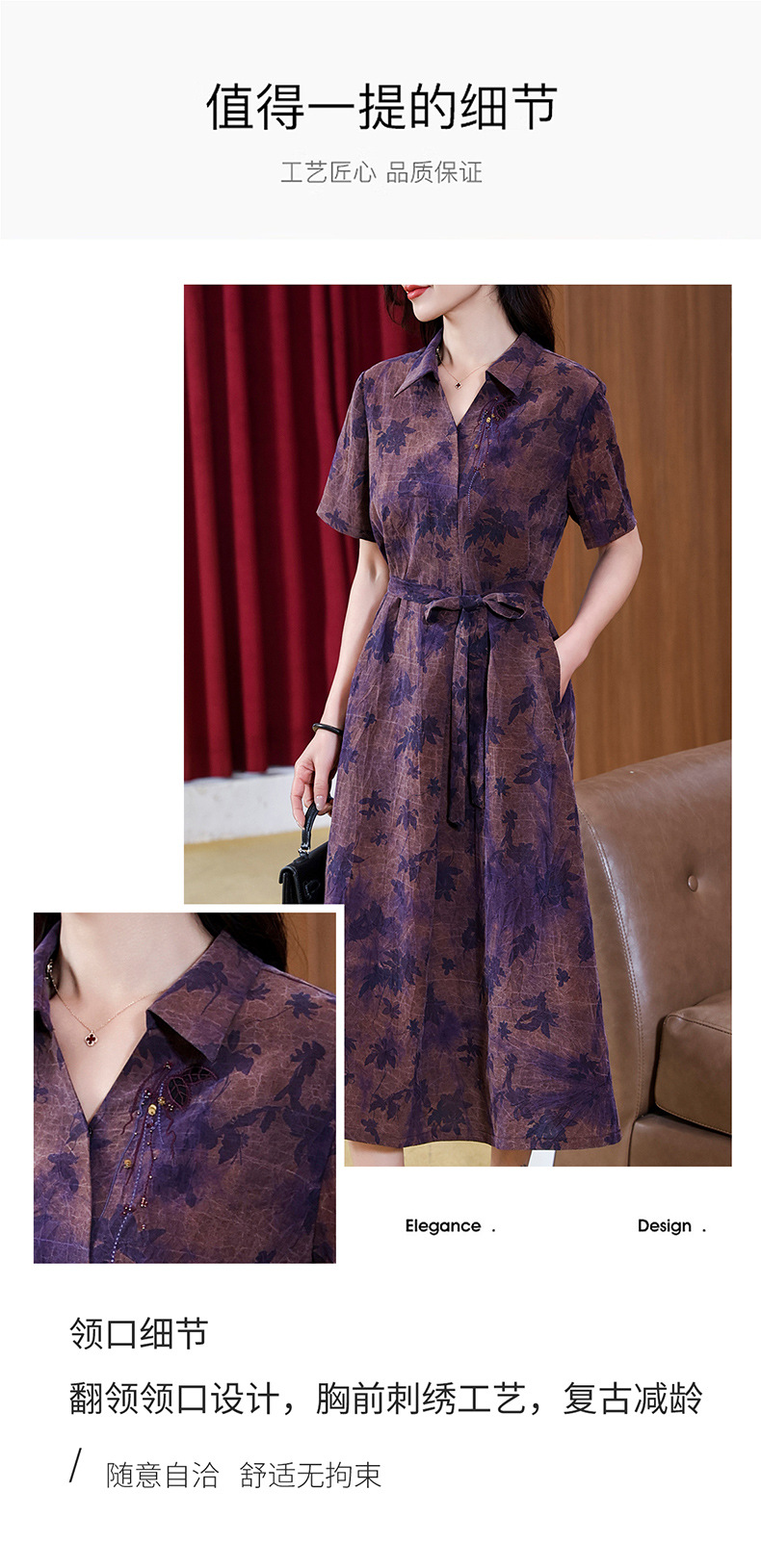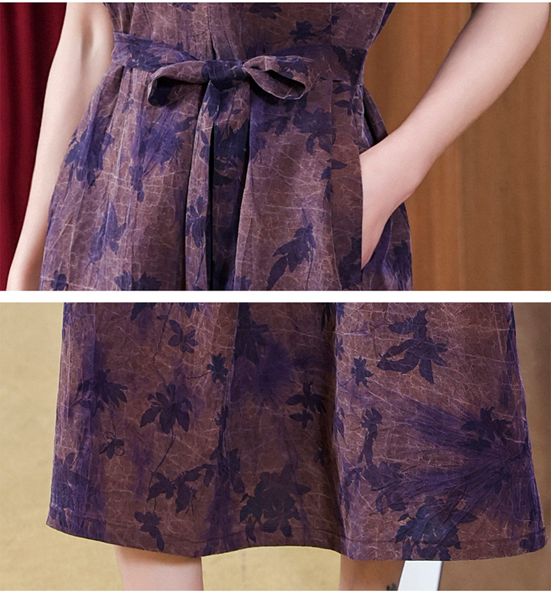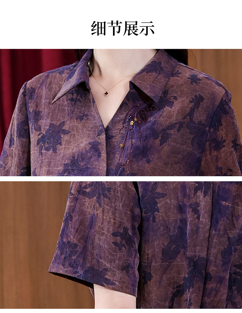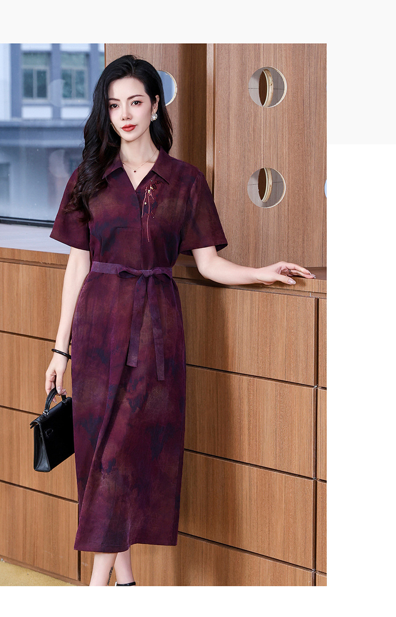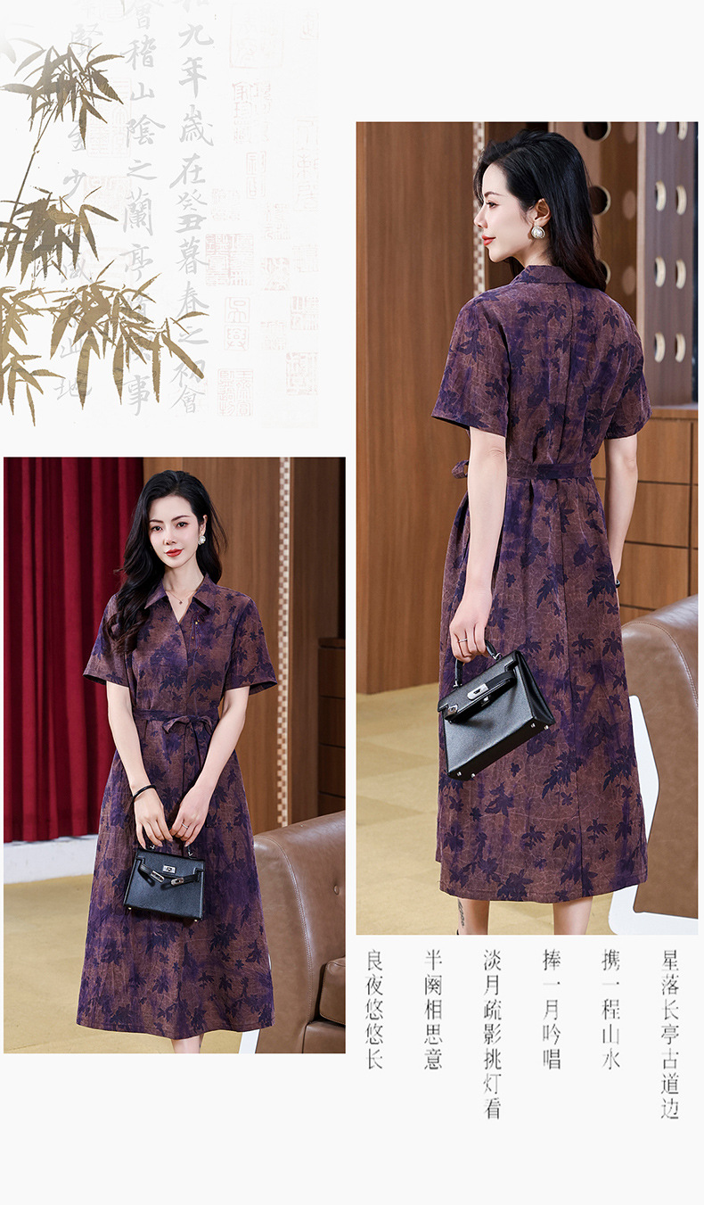 丁摩扎染香云纱连衣裙女新款衬衫领印花桑蚕丝系带真丝裙AL221878