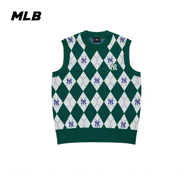 MLB男女同款棋盘格满印老花针织套衫马甲背心3FKPM0334