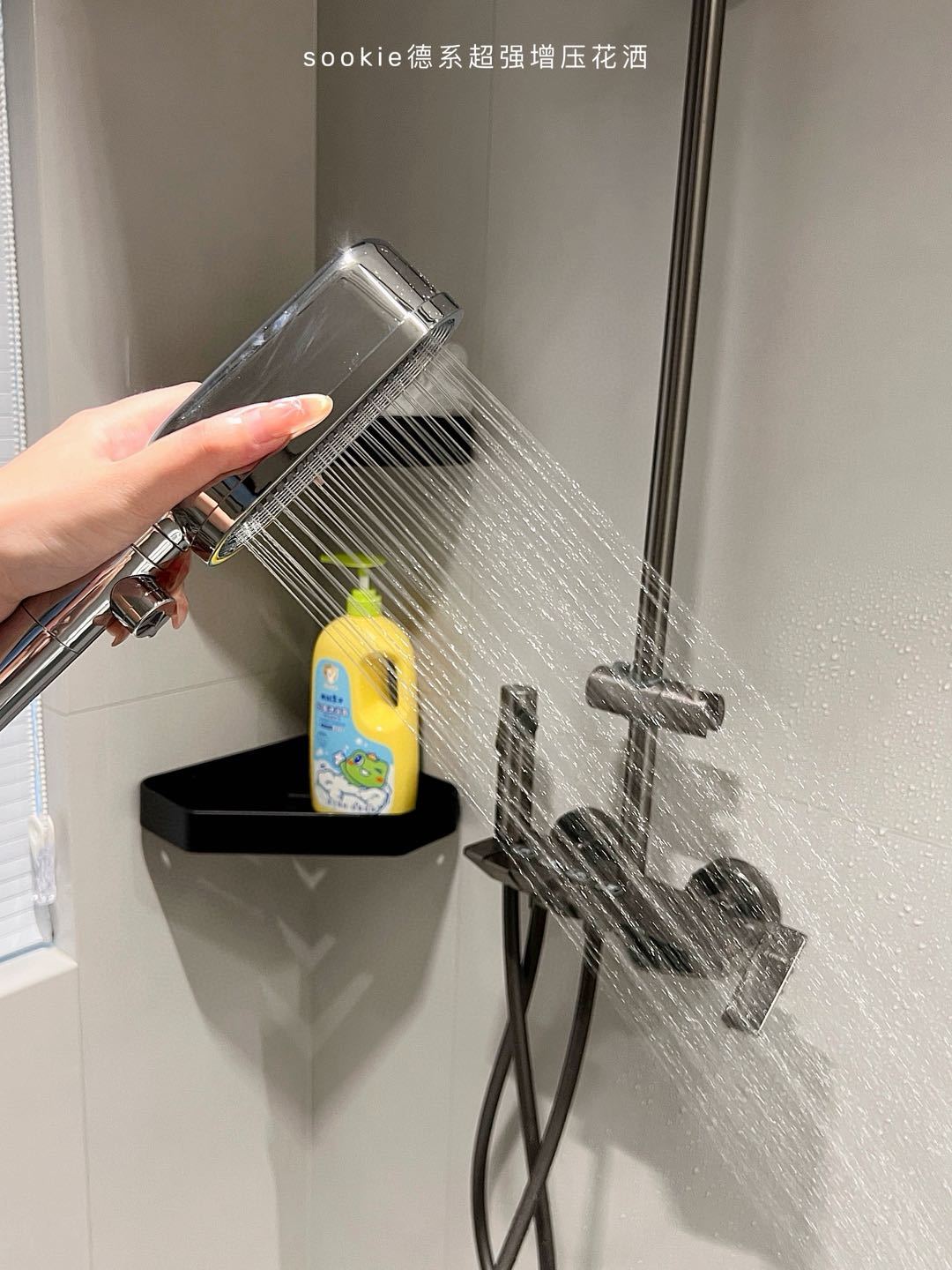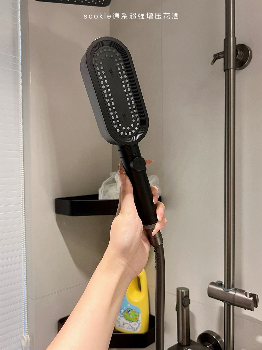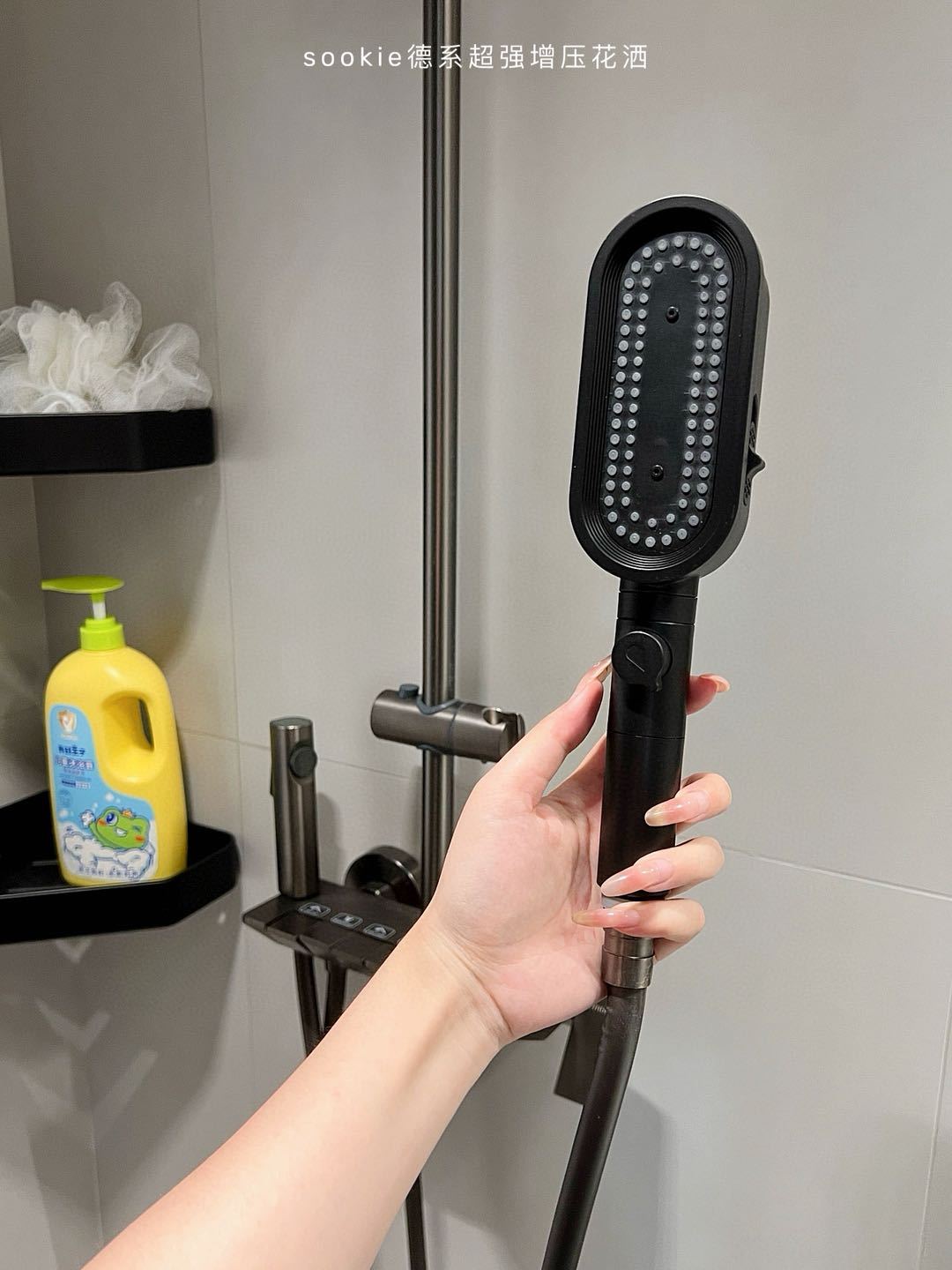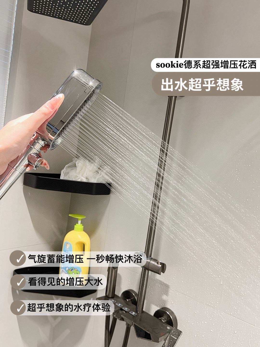 SOOKIE 增压花洒 极光银/曜石黑/钛金灰 三种颜色可选;三档增压 加宽瀑布水幕,全身瞬间包裹,内置加厚滤芯,1秒除氯净化;纳米级细腻水雾,超爽洗澡体验