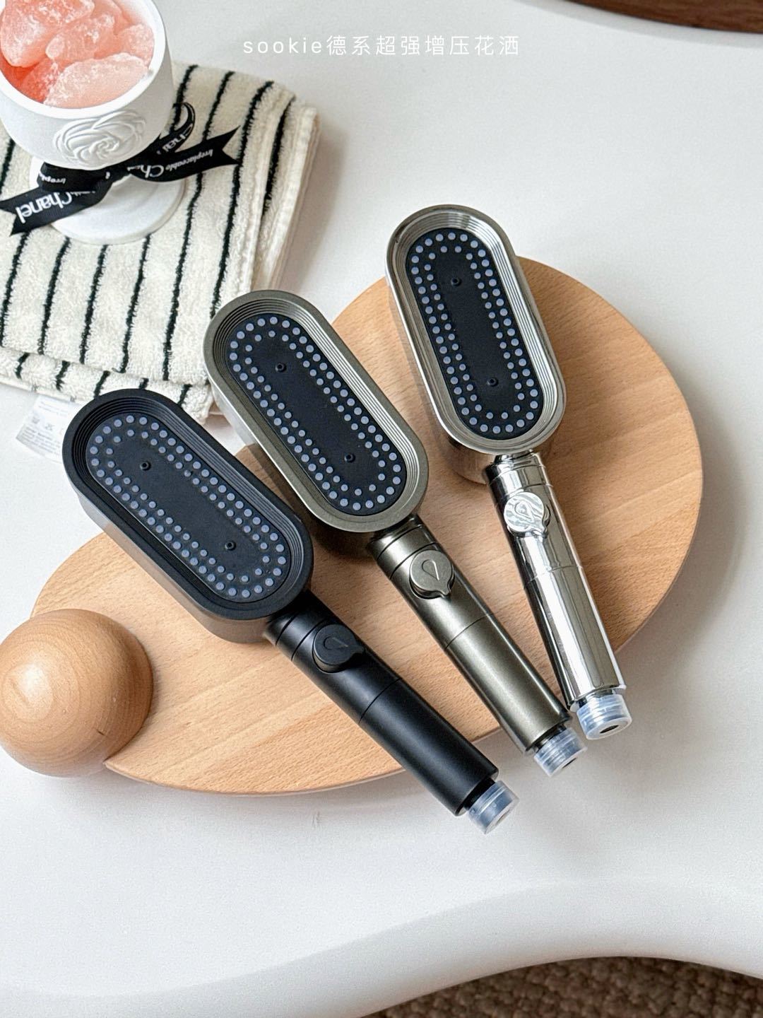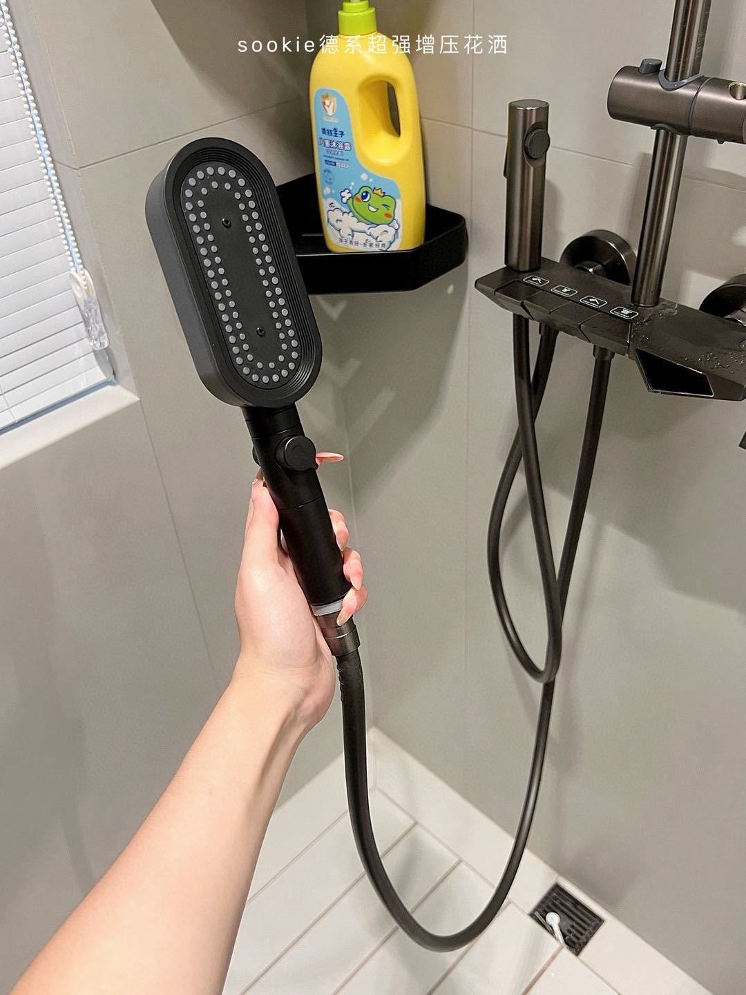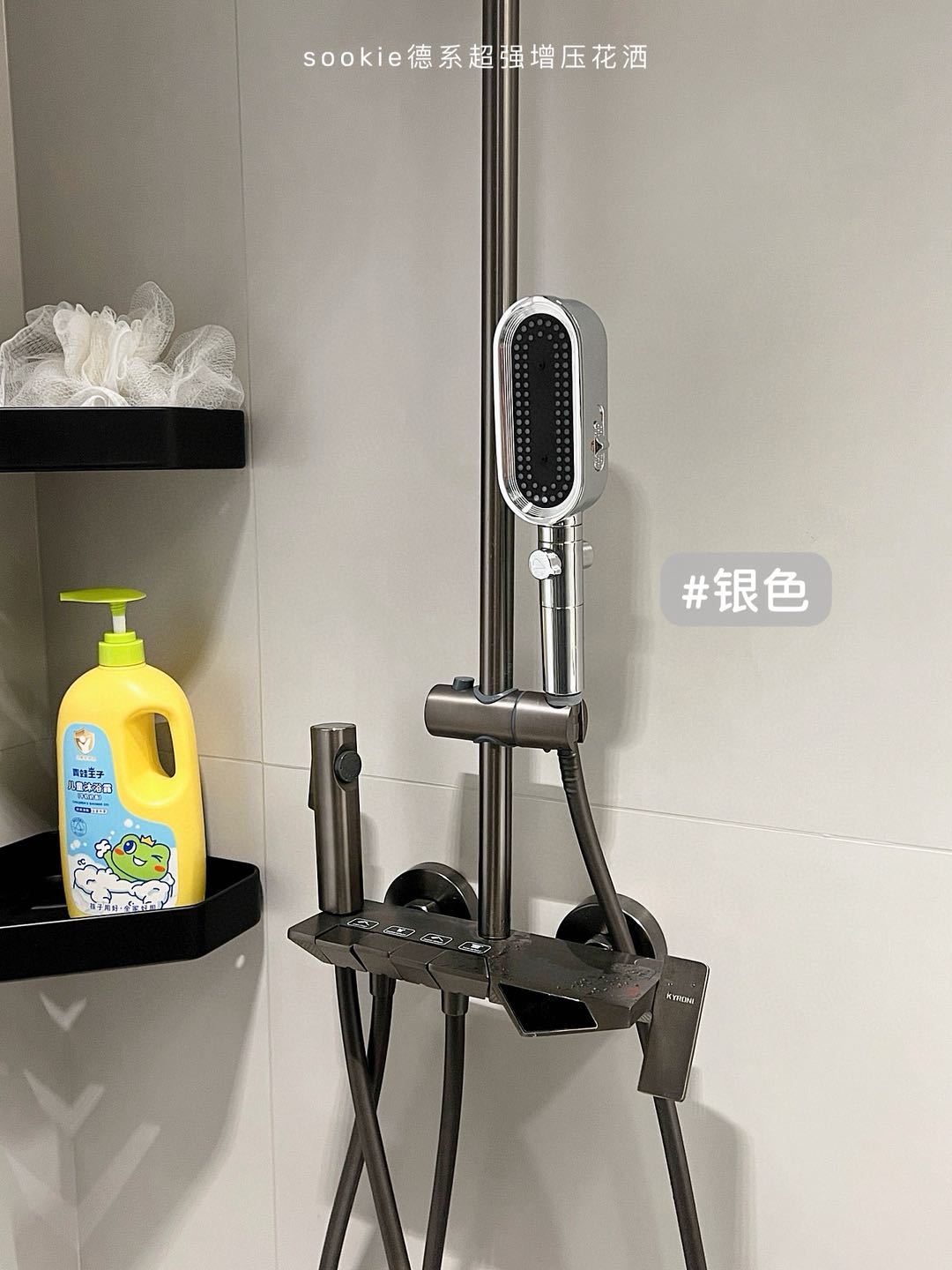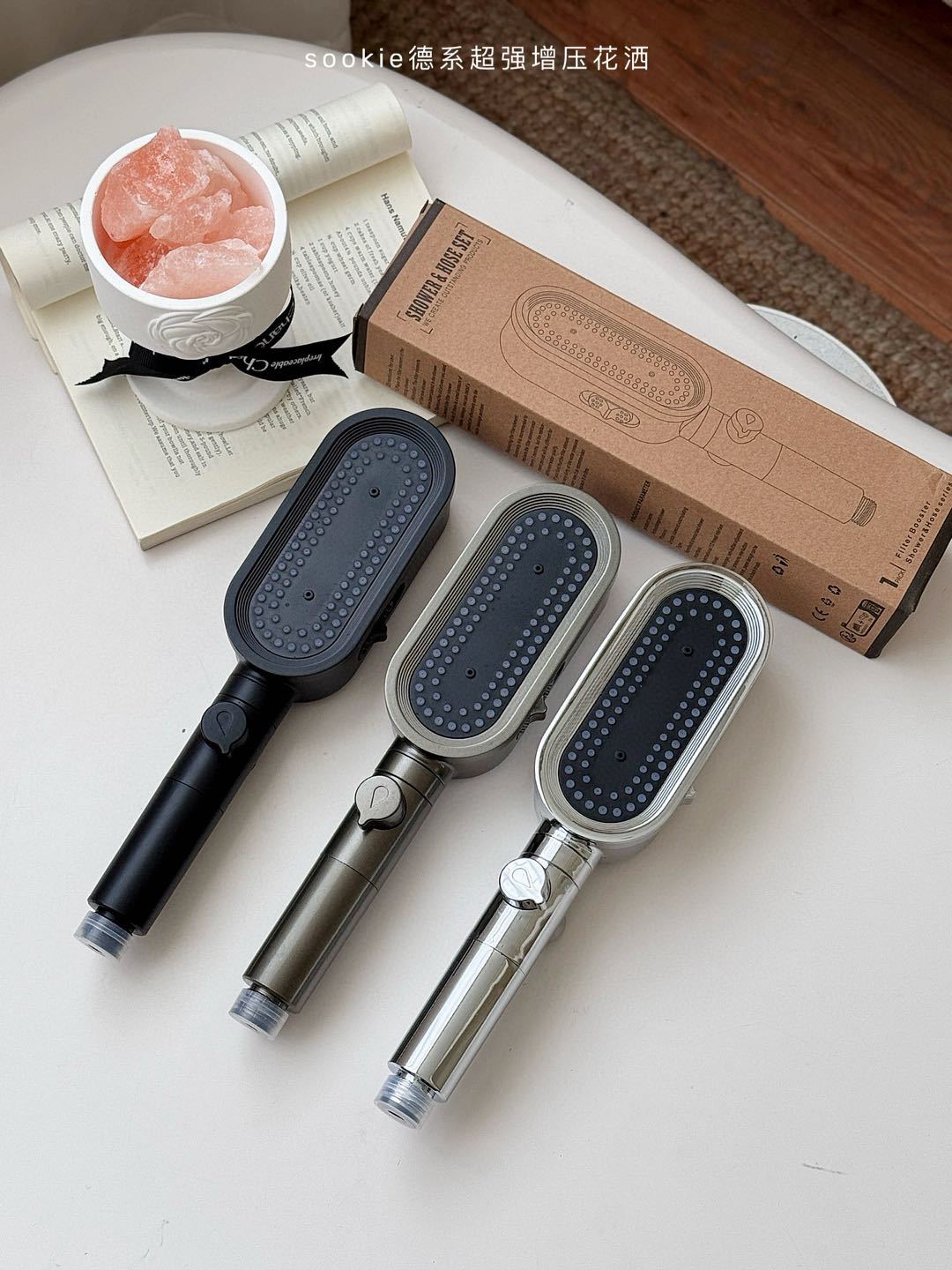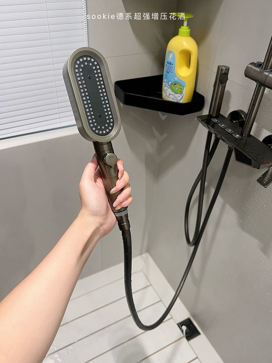 SOOKIE 增压花洒 极光银/曜石黑/钛金灰 三种颜色可选;三档增压 加宽瀑布水幕,全身瞬间包裹,内置加厚滤芯,1秒除氯净化;纳米级细腻水雾,超爽洗澡体验