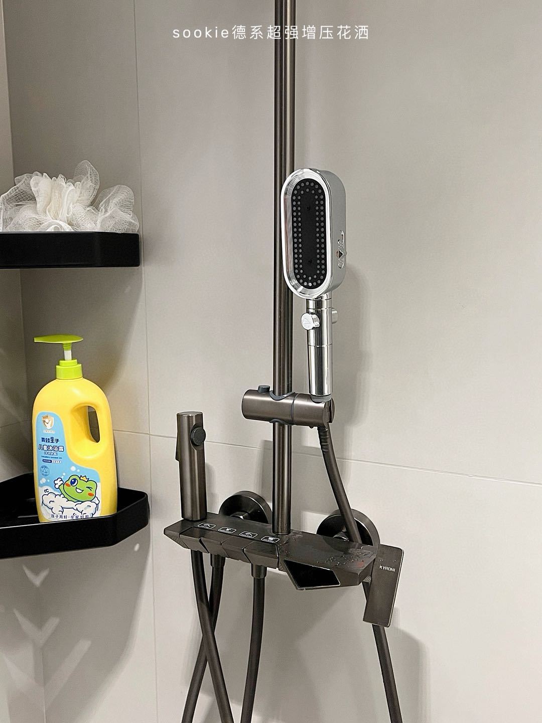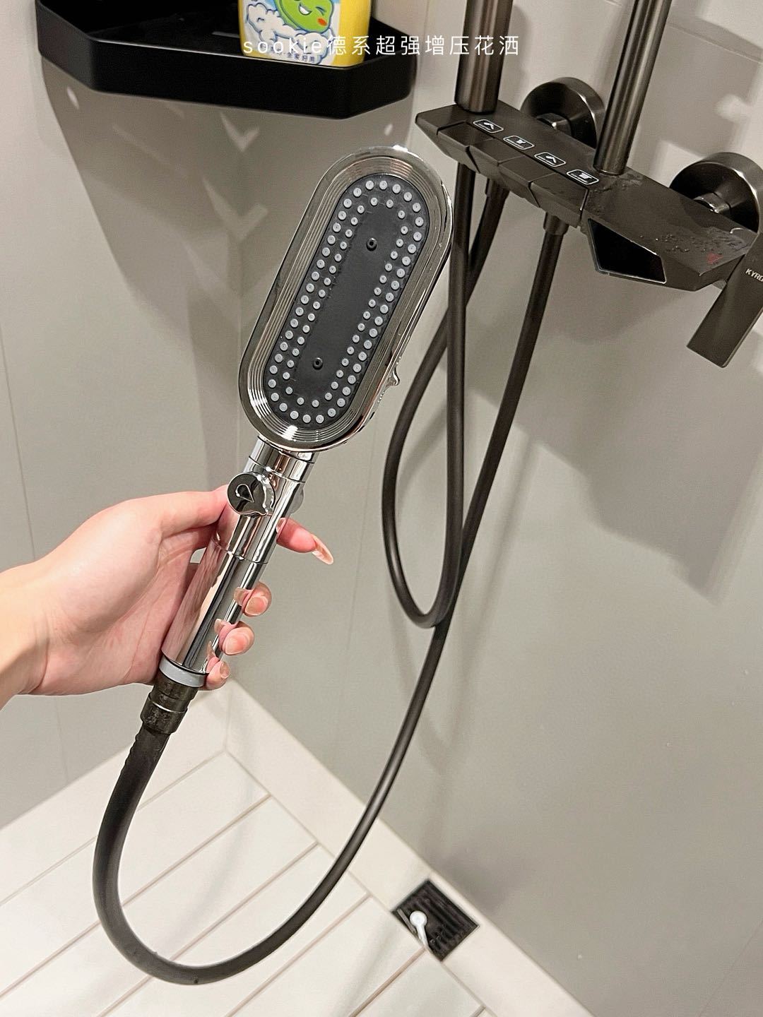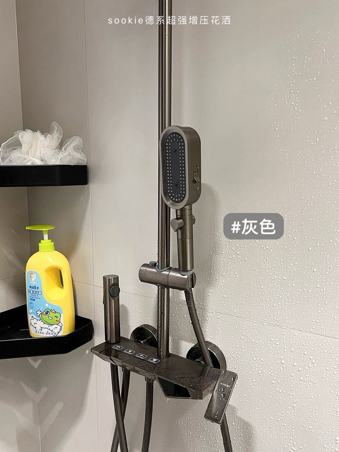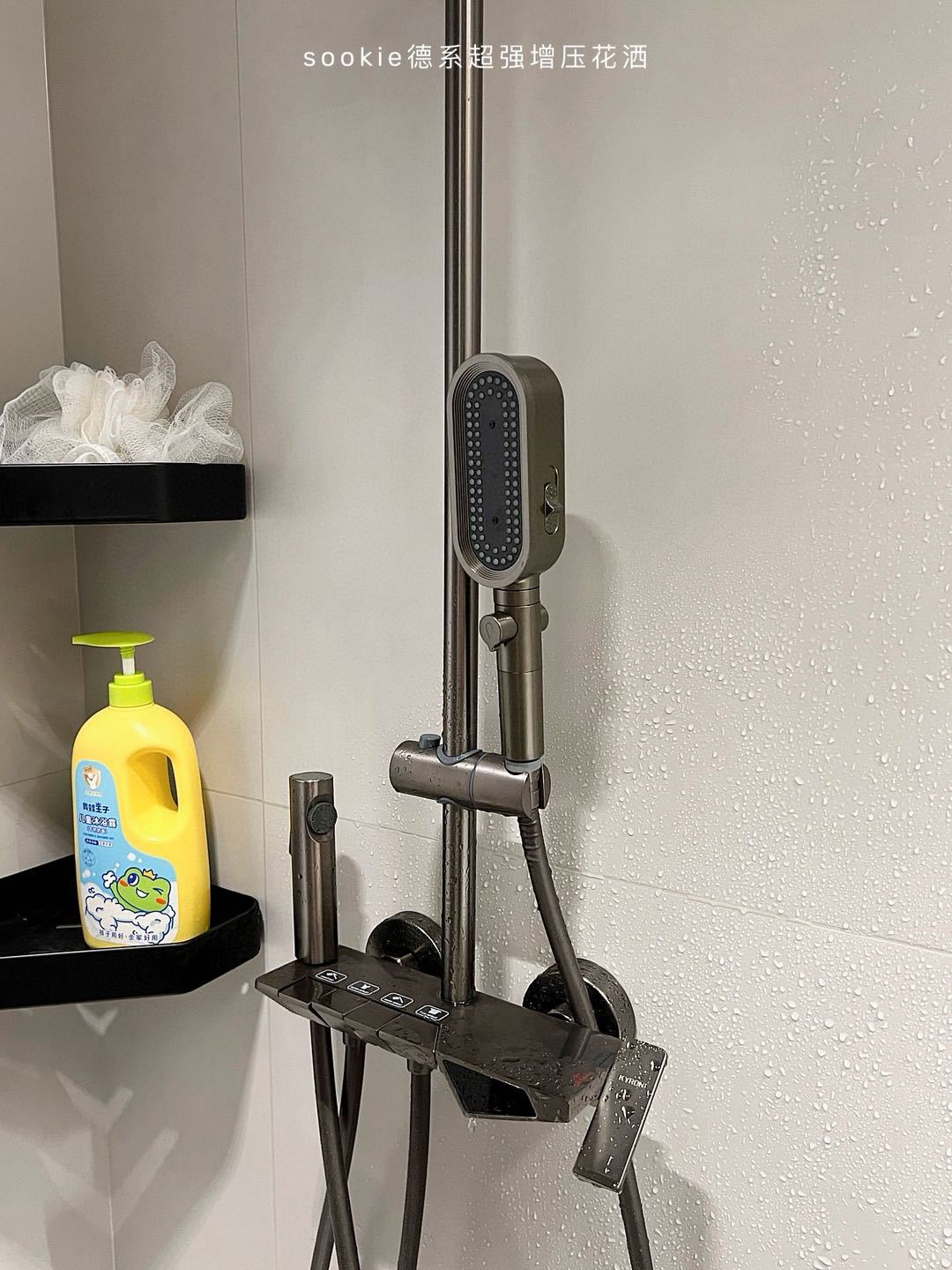 SOOKIE 增压花洒 极光银/曜石黑/钛金灰 三种颜色可选;三档增压 加宽瀑布水幕,全身瞬间包裹,内置加厚滤芯,1秒除氯净化;纳米级细腻水雾,超爽洗澡体验