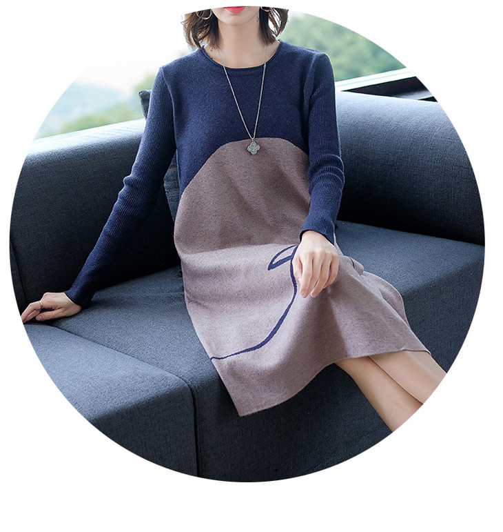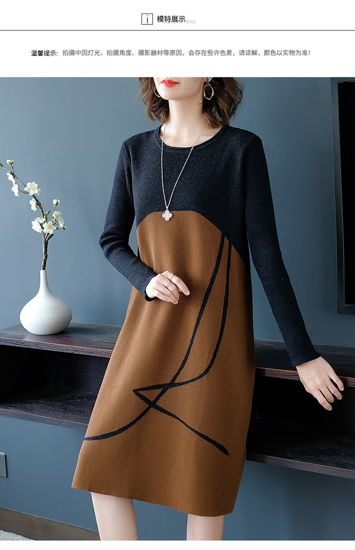 NYL019748新款时尚气质百搭圆领长袖中长款针织连衣裙