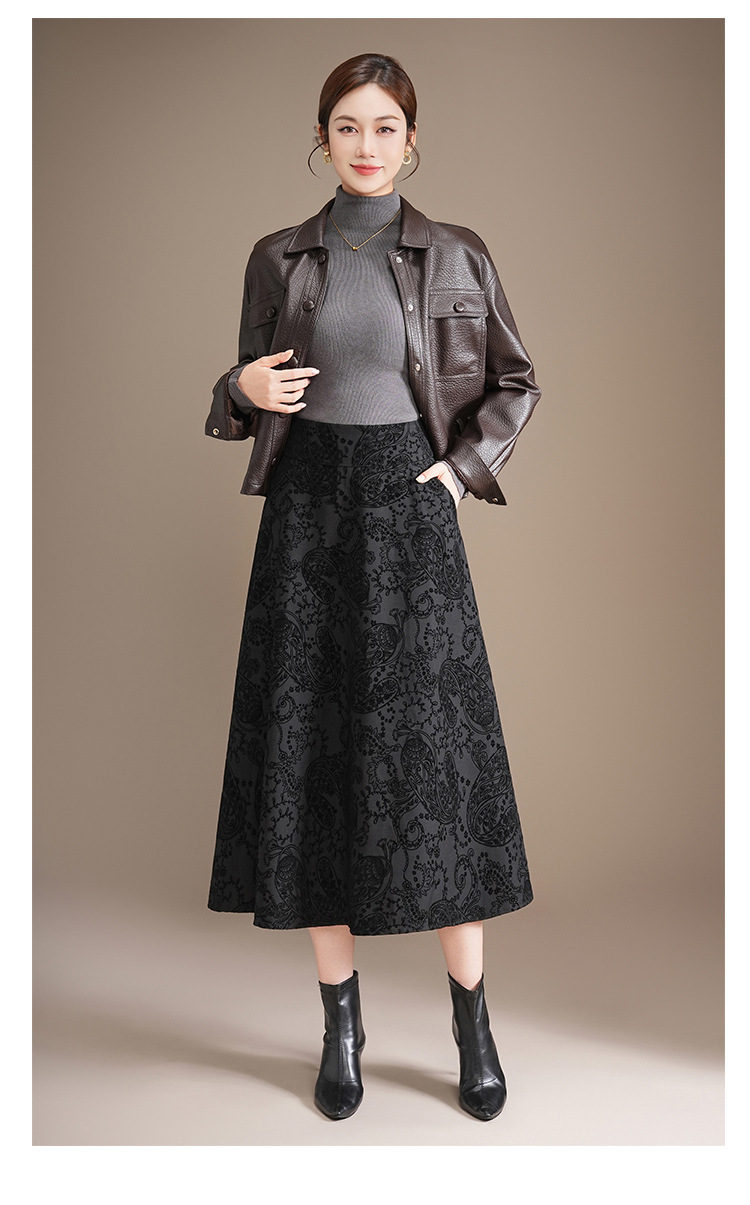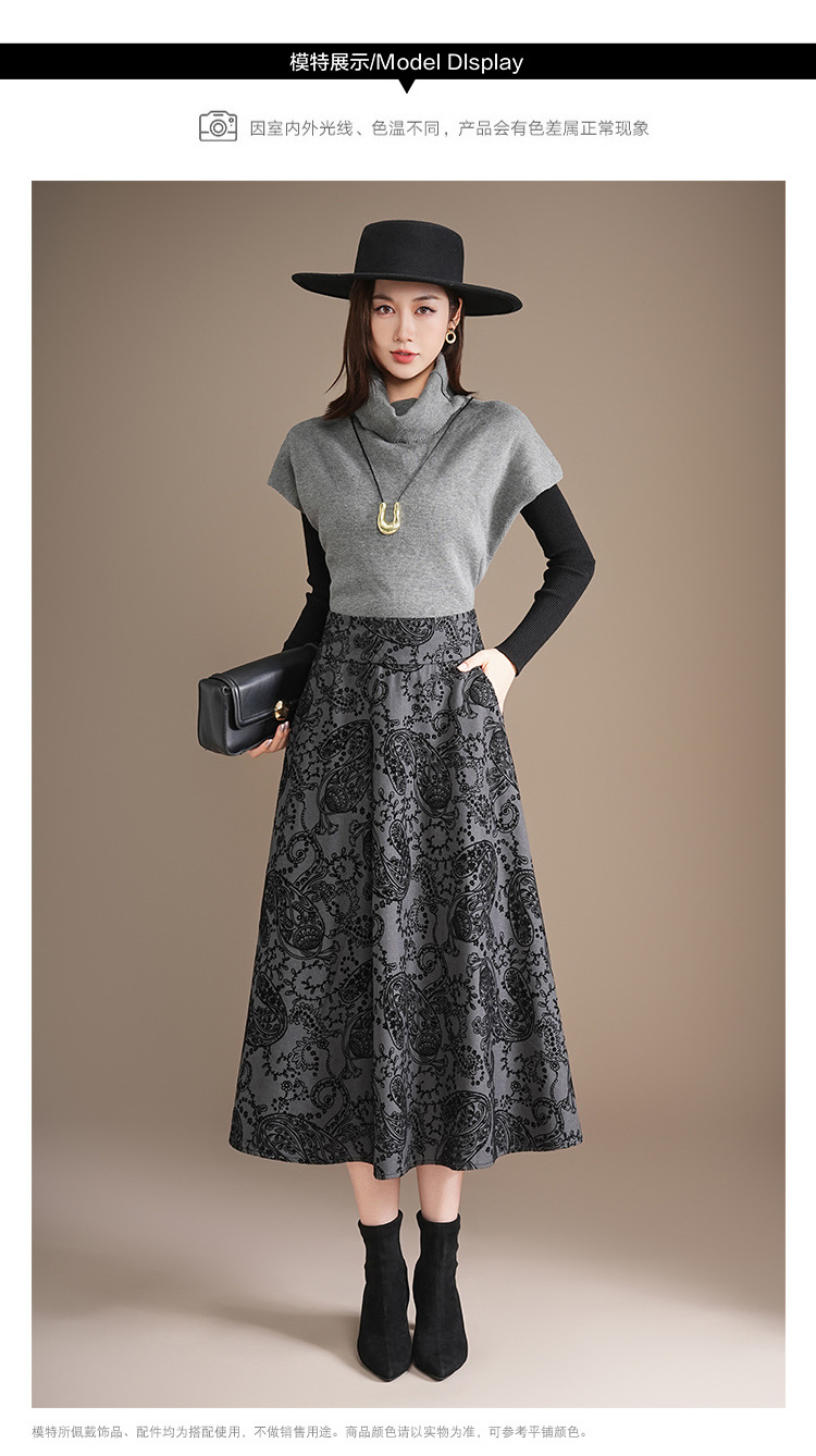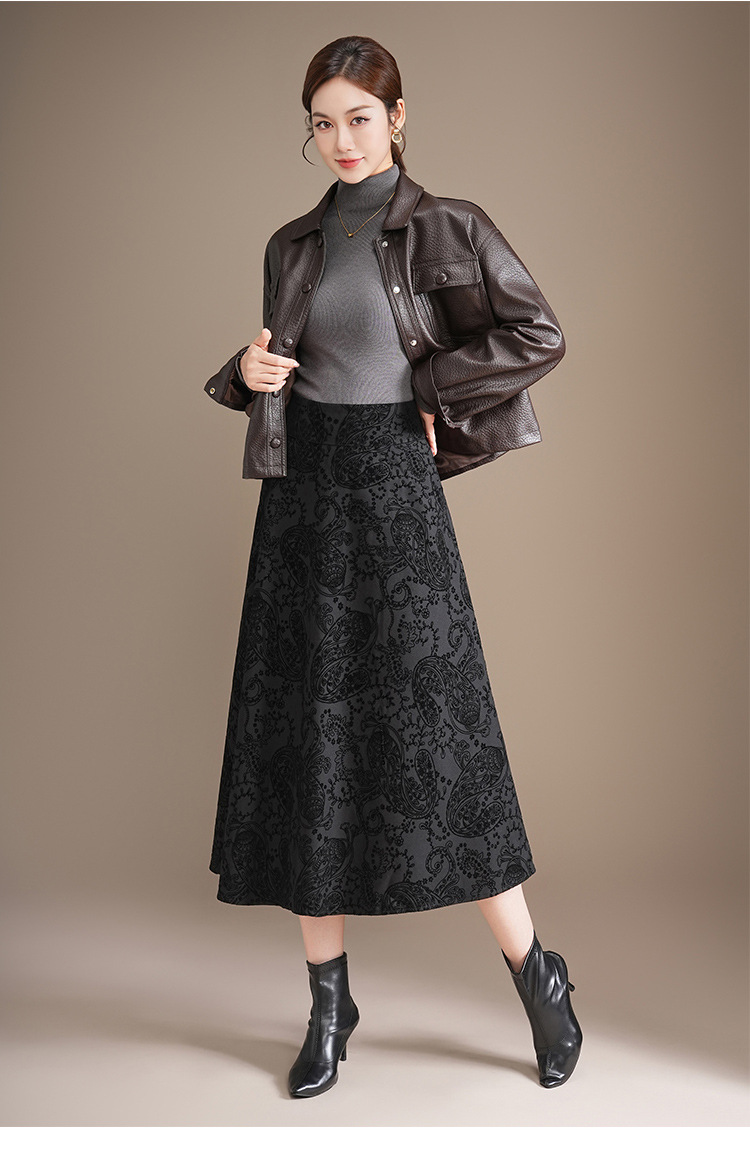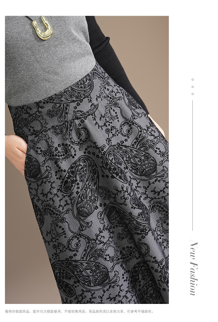 印花通勤百褶大摆裙垂坠感时尚A字裙2025秋季新款长款高腰半身裙