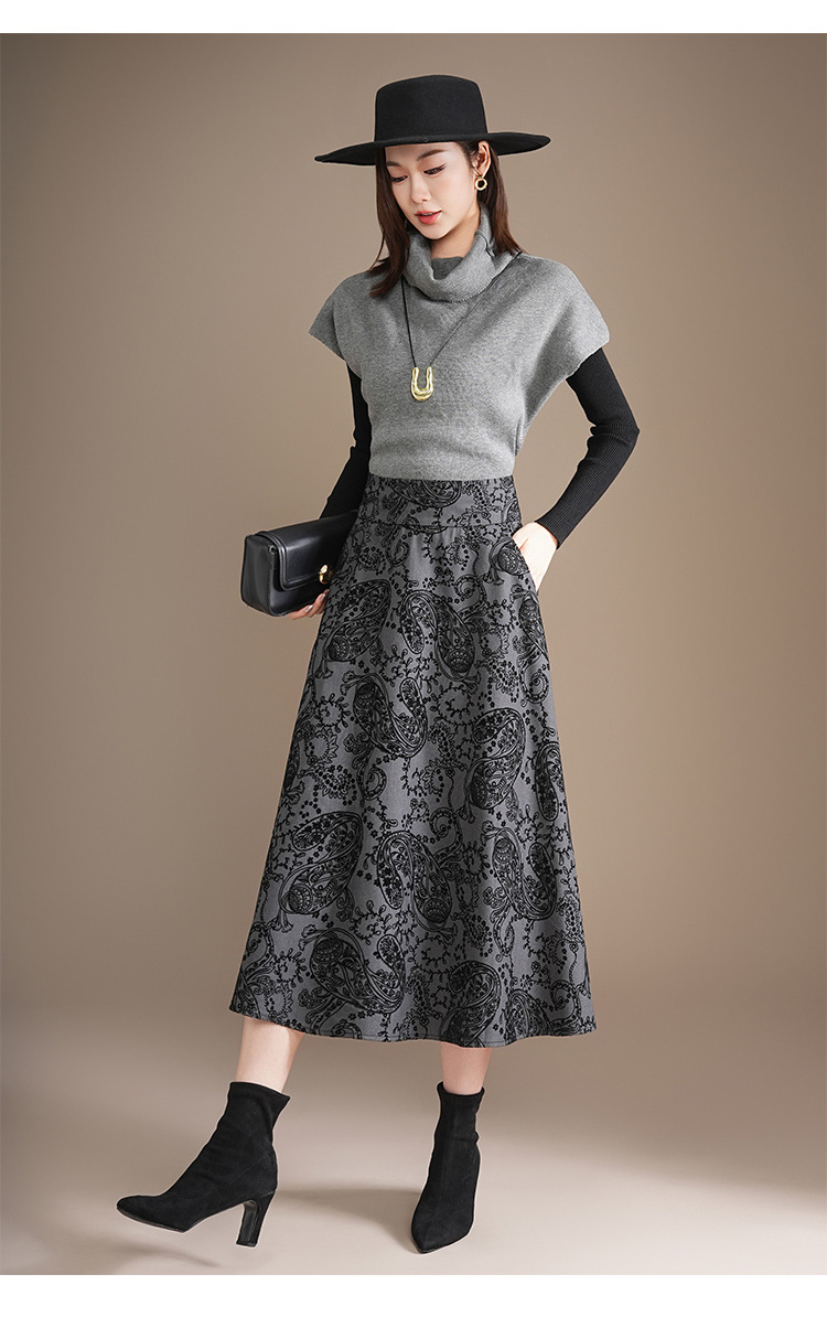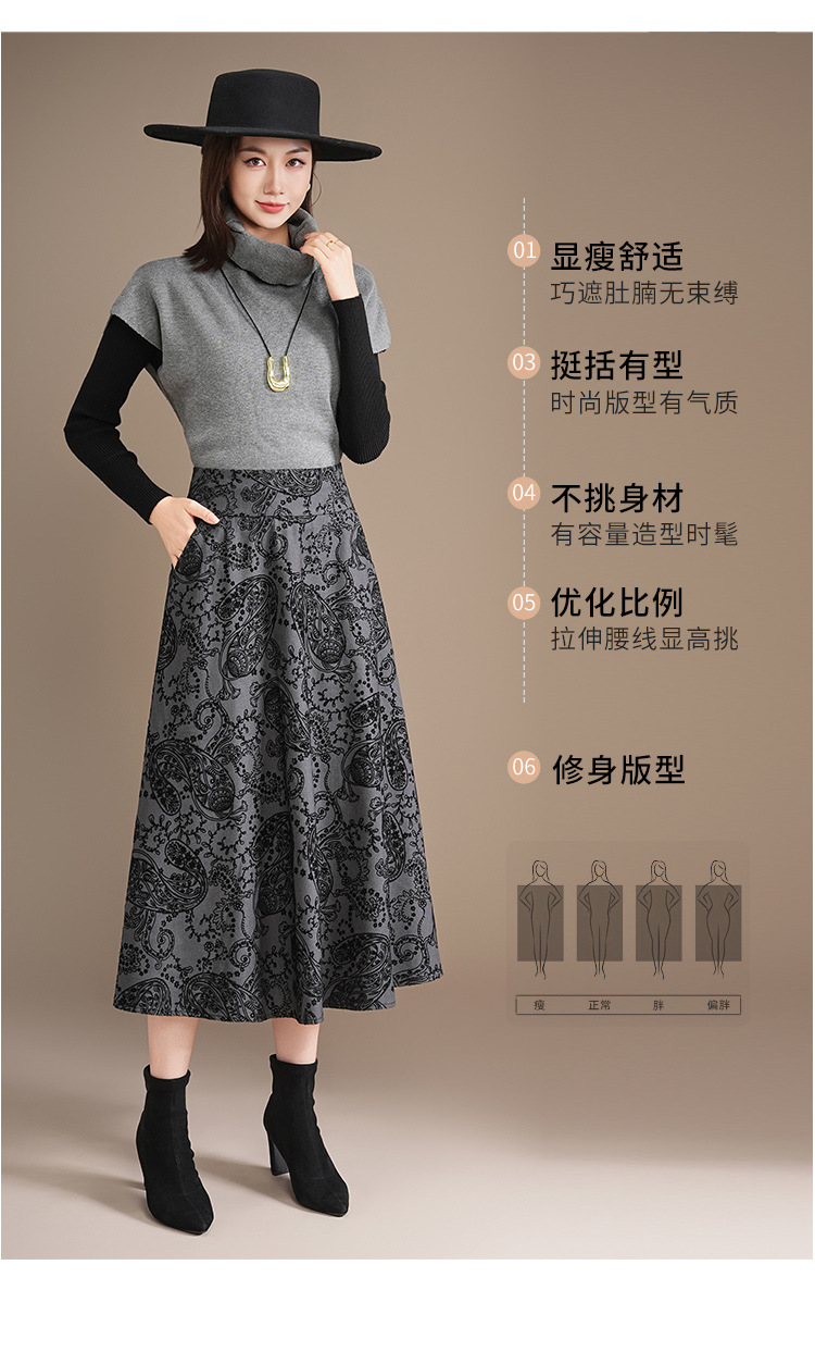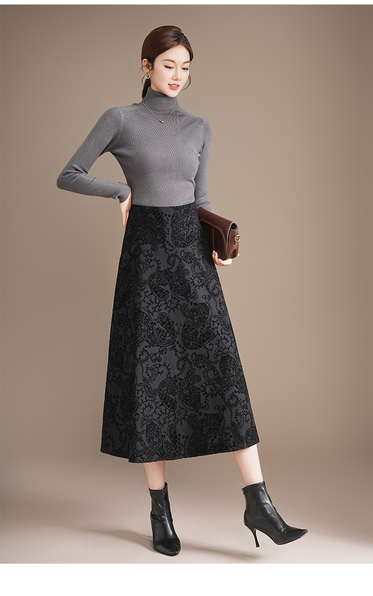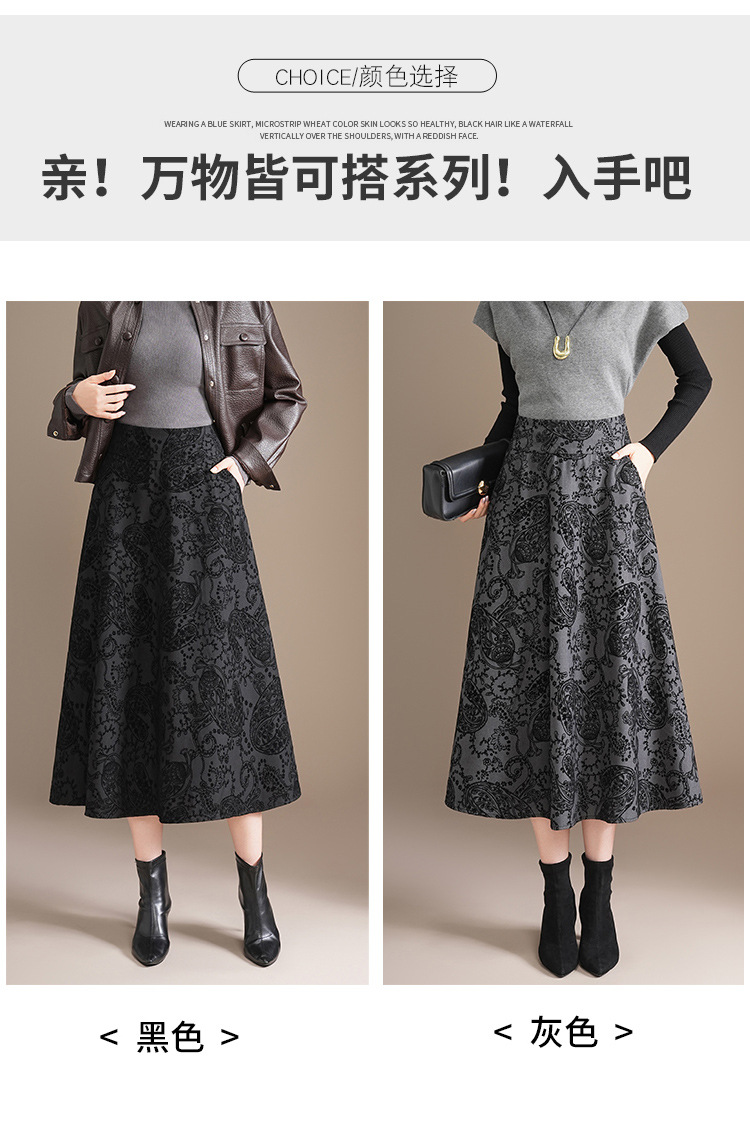 印花通勤百褶大摆裙垂坠感时尚A字裙2025秋季新款长款高腰半身裙
