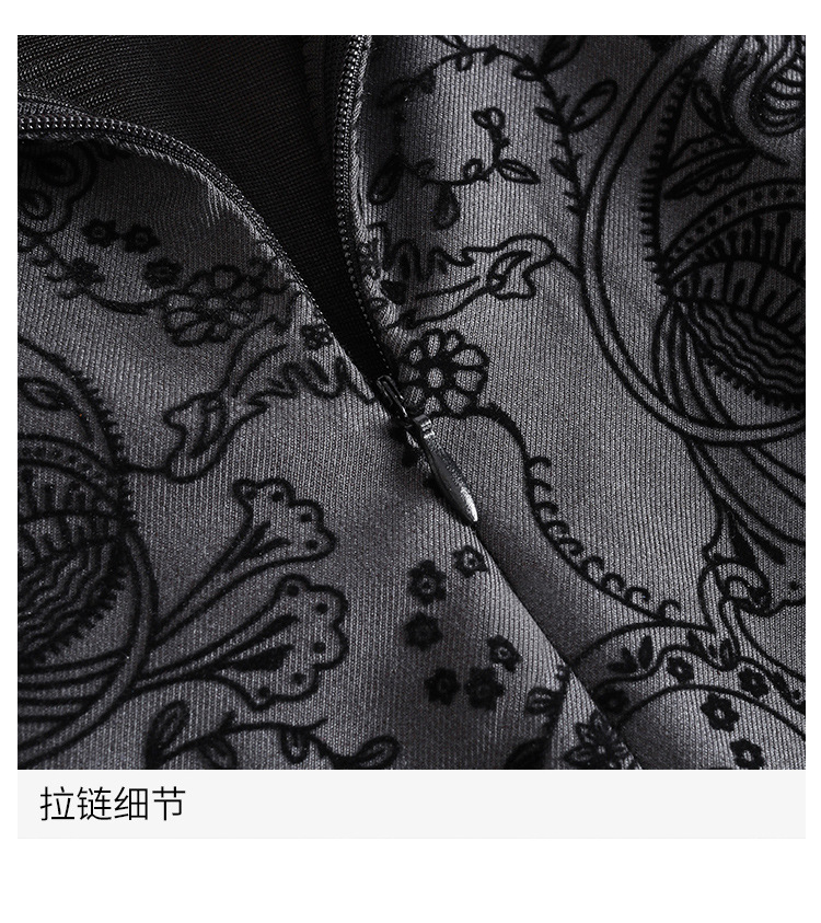 ALXBL1903中长款七分袖拉链2017年春季连衣裙花色V领中腰