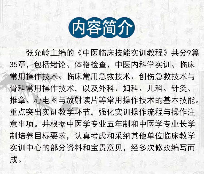 [旗舰店 现货]中医临床技能实训教程 上册·中文版 张允岭 主编 9787117255295 中医药 2018年5月参考书 人民卫生出版社