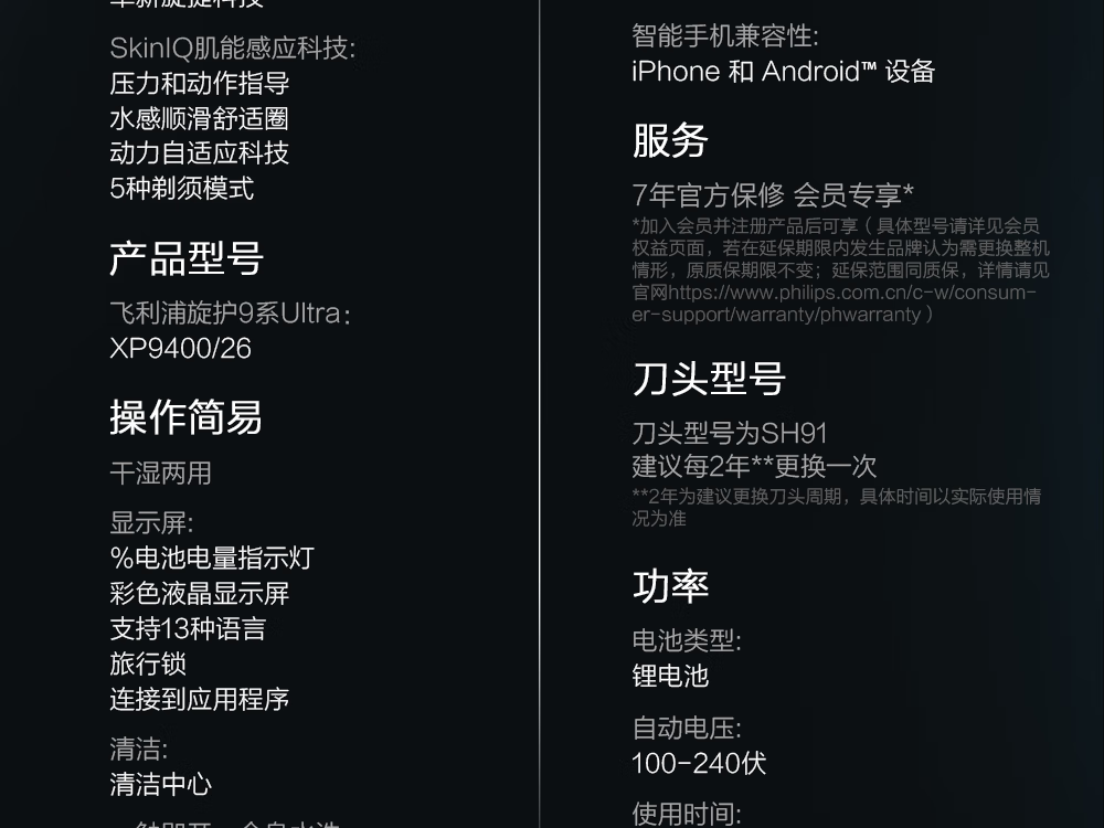 【飞利浦】飞利浦旋护新9系奥创版电动剃须刀XP9400