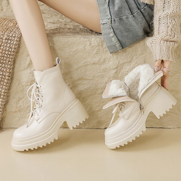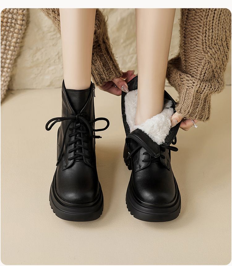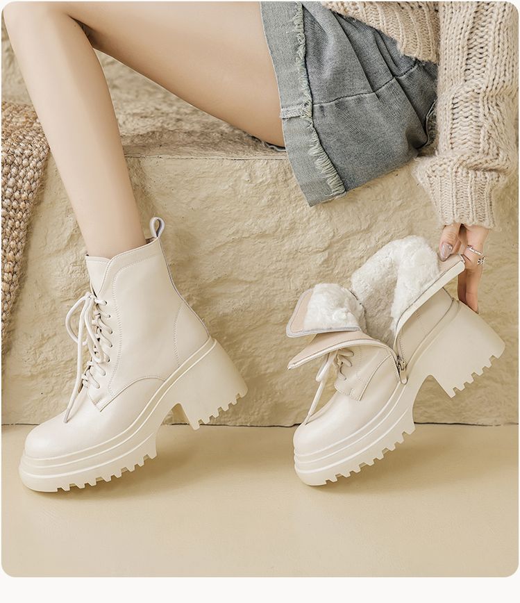 货号:S2337帮面:牛皮跟高:8cm颜色:黑色 白色尺码:34-39内里:羊皮毛一体鞋垫:羊皮毛一体