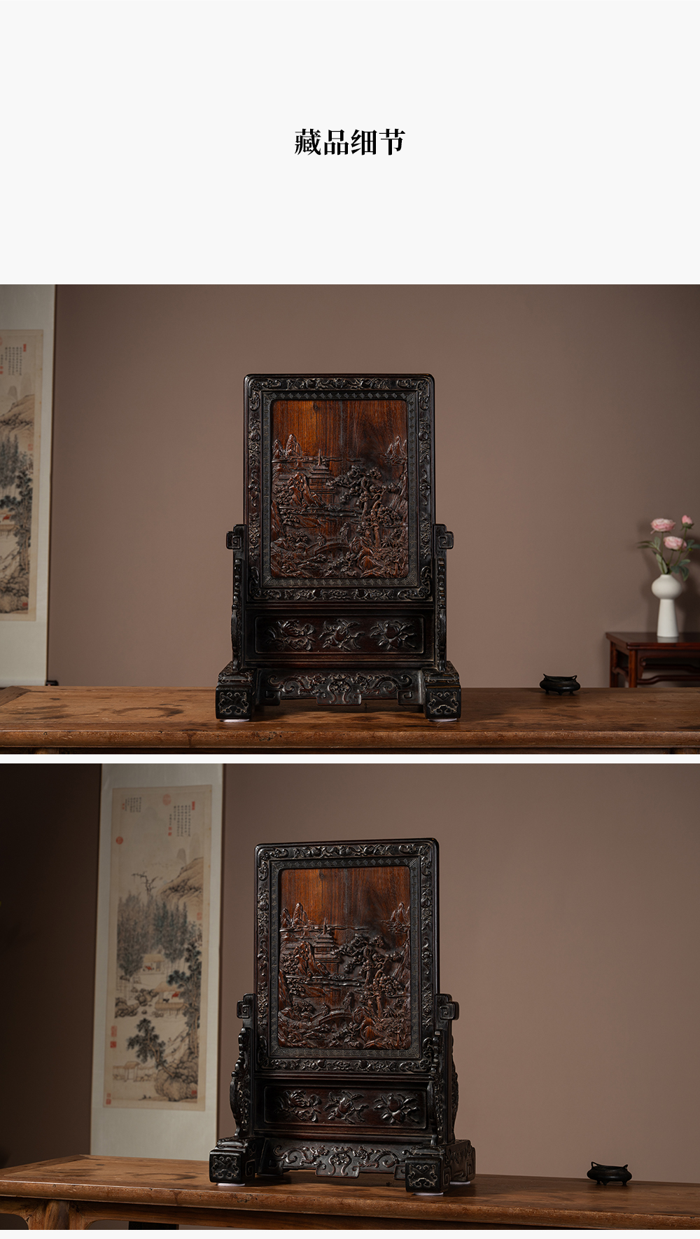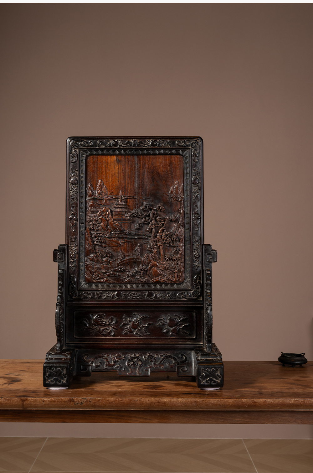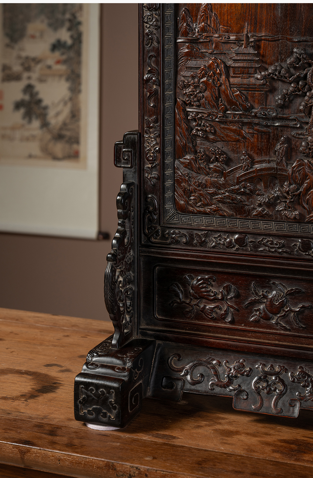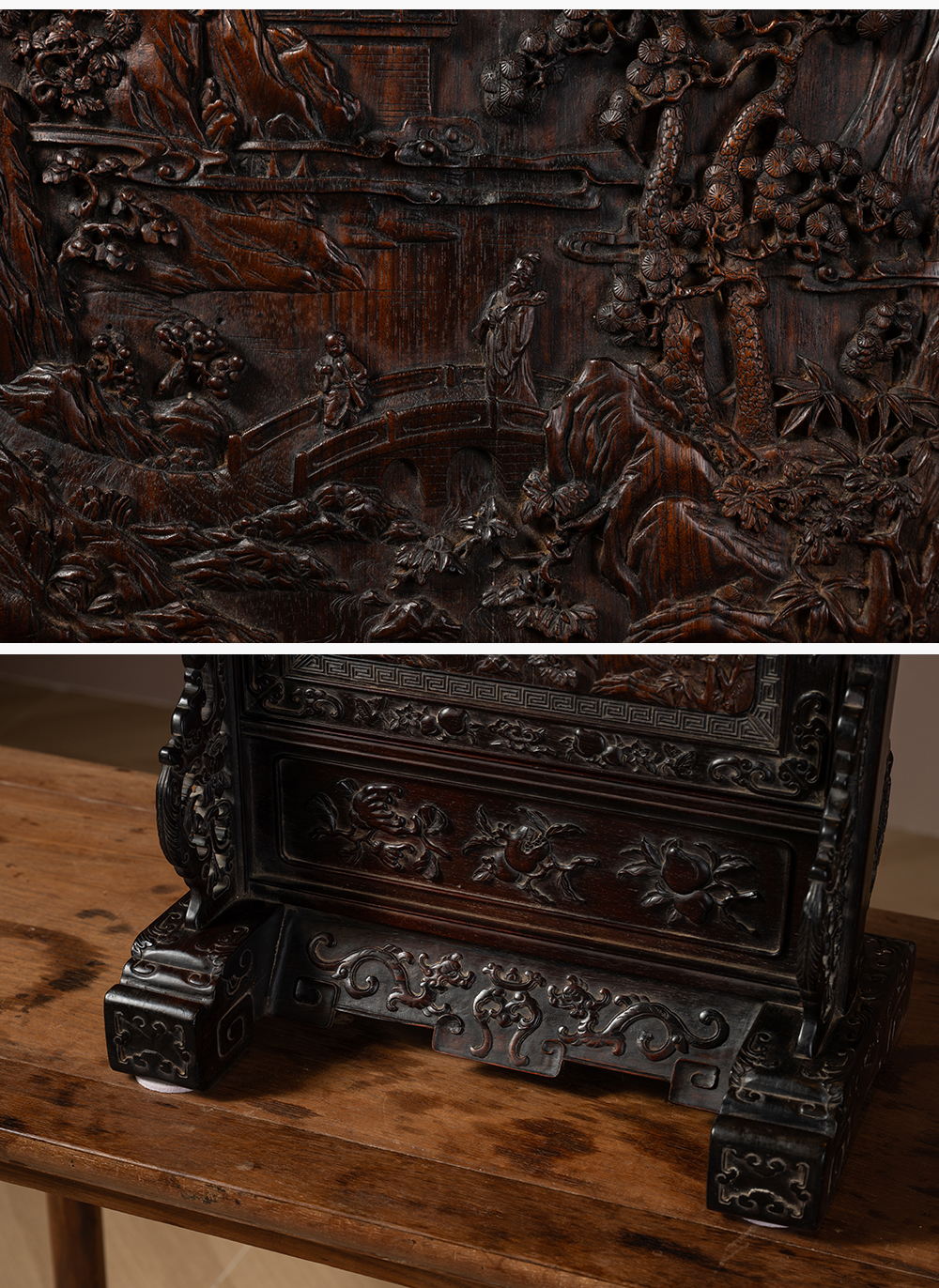 清中期 红木满工雕携琴访友山水人物插屏