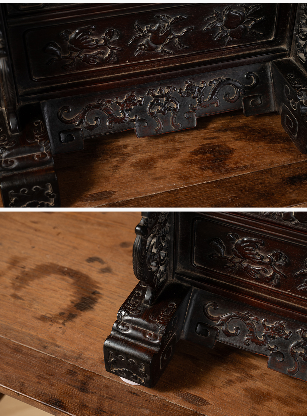 二十世纪 黄花梨卷草纹三弯腿带托泥方香几(一对)