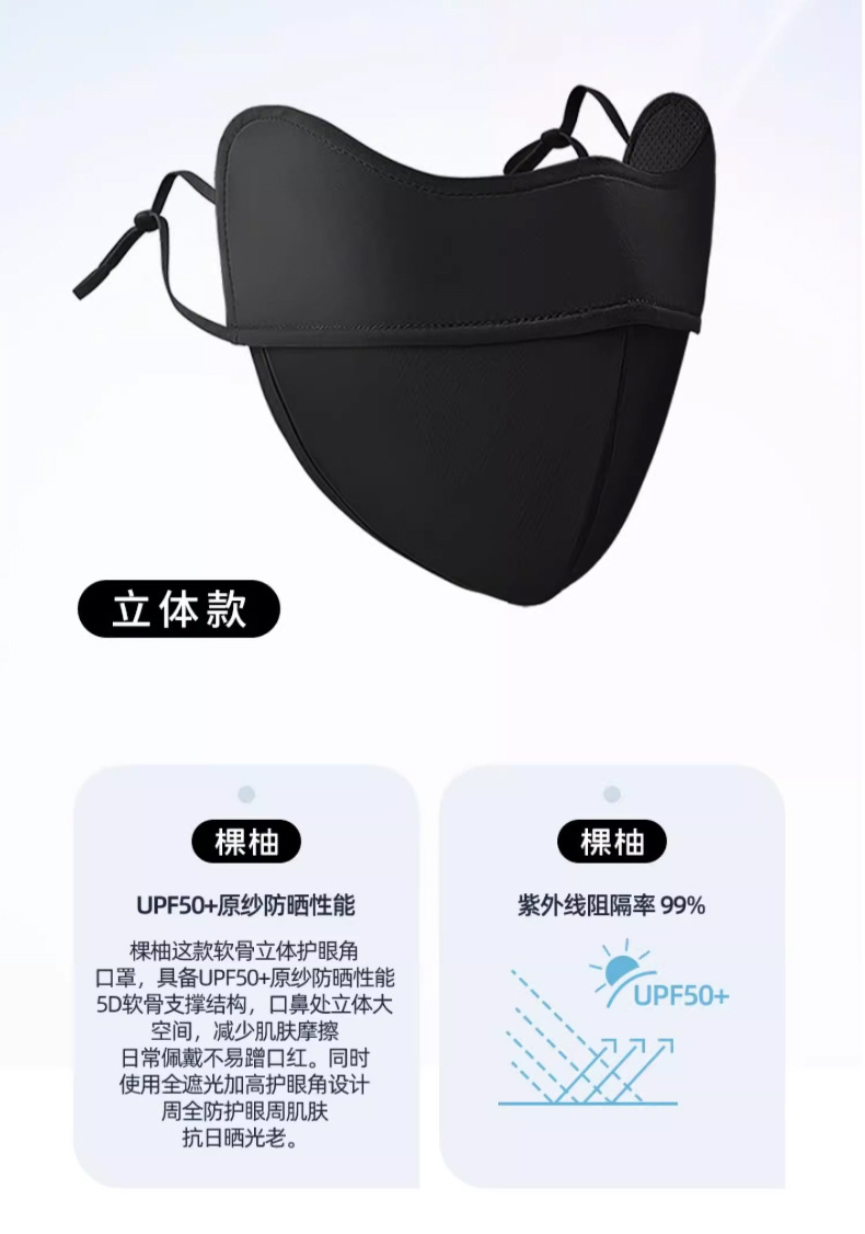 凉感 UPF50+,拒绝紫外线99%【5D软骨支撑!视觉显脸受】冰丝防晒口罩女防紫外线透气护眼角遮阳高颜值开车全脸面罩骑行夏。hb