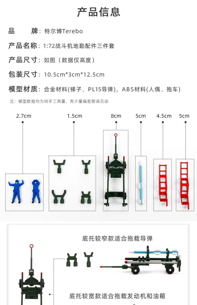 【特尔博-长春航展、九三阅兵纪念品】 飞机牵引车模型 地勤兵人 霹雳PL-15导弹 歼10 歼15 歼20飞机牵引车