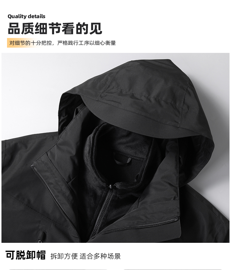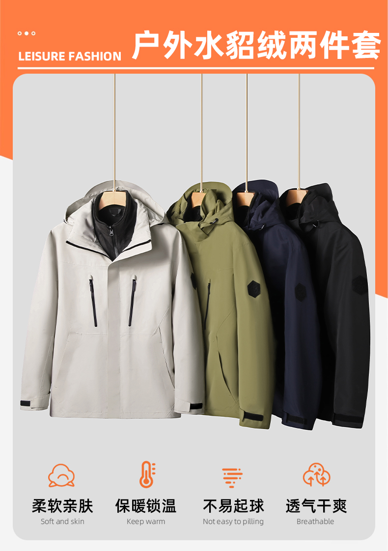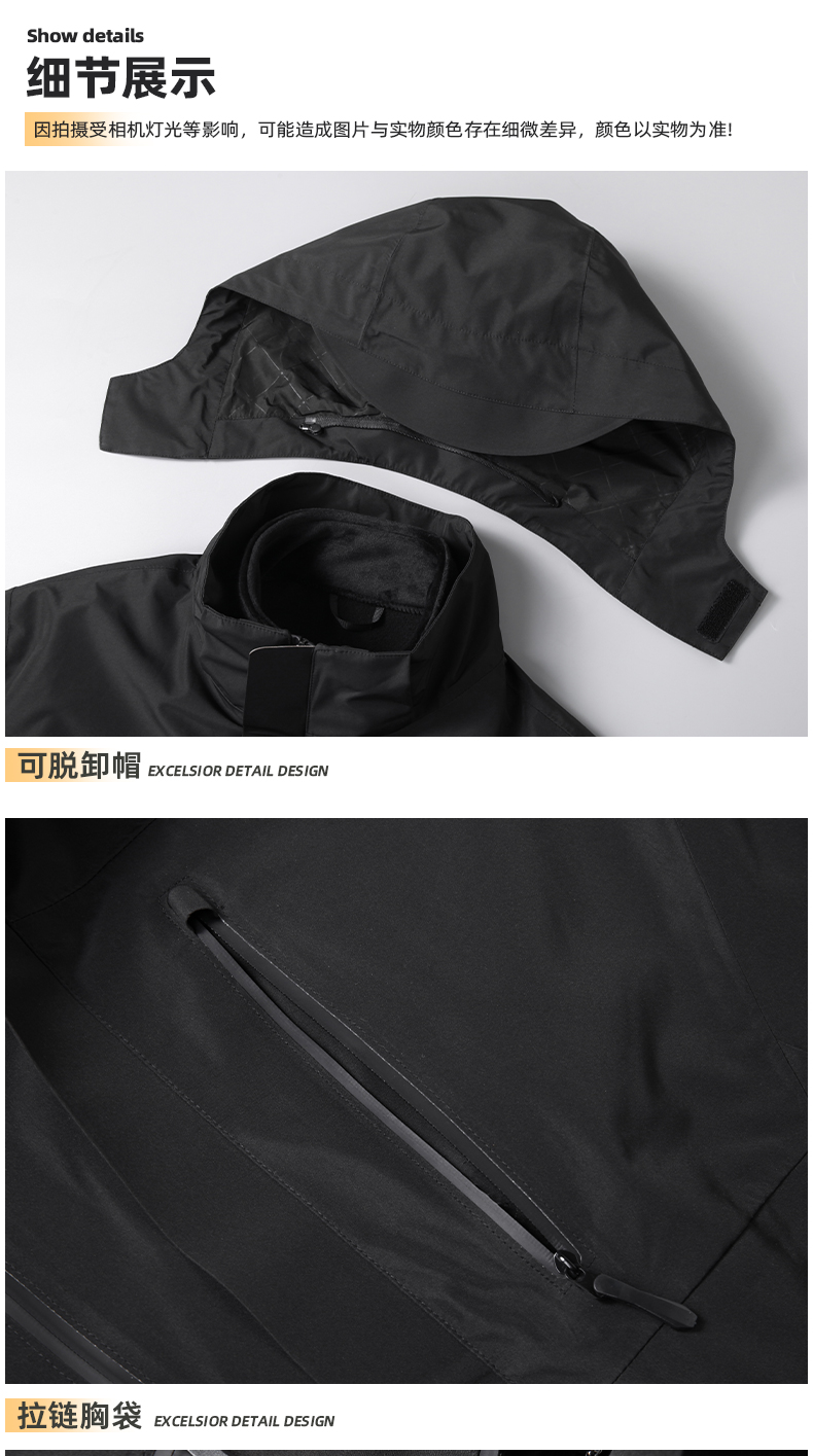 【三合一冲锋衣】【新款DK】大依优型大码水貂绒内胆可脱卸帽冲锋衣套男宽松加肥加大码上衣夹克户外衣两件套