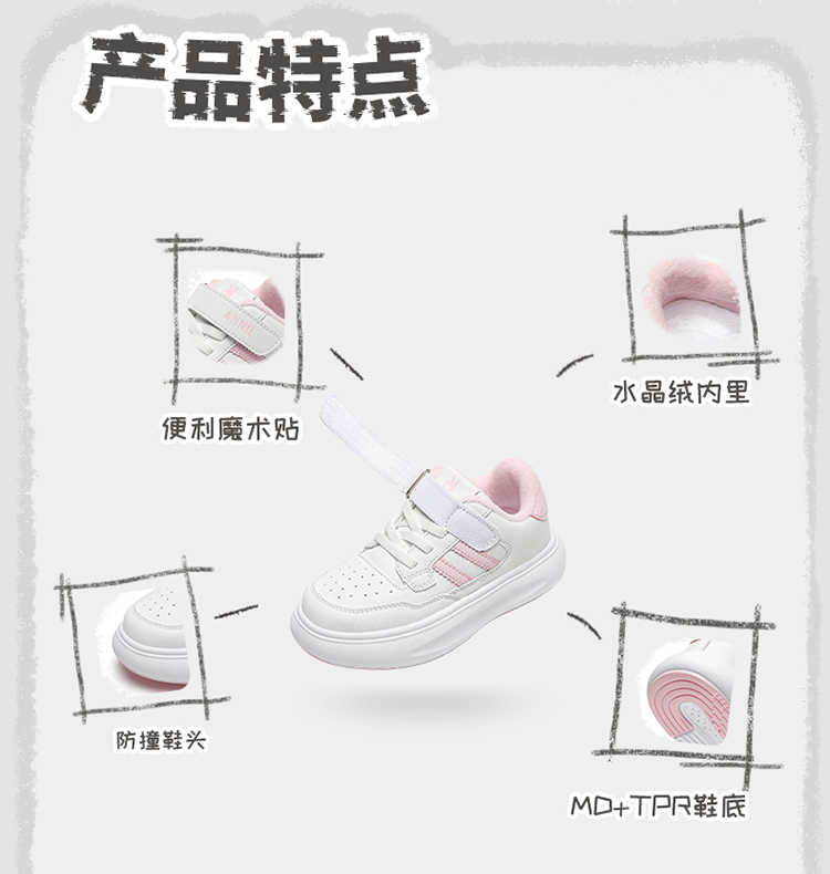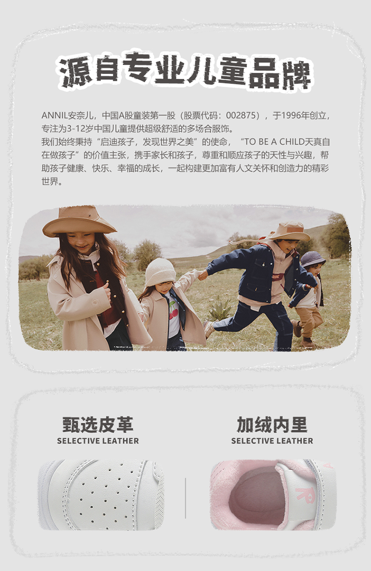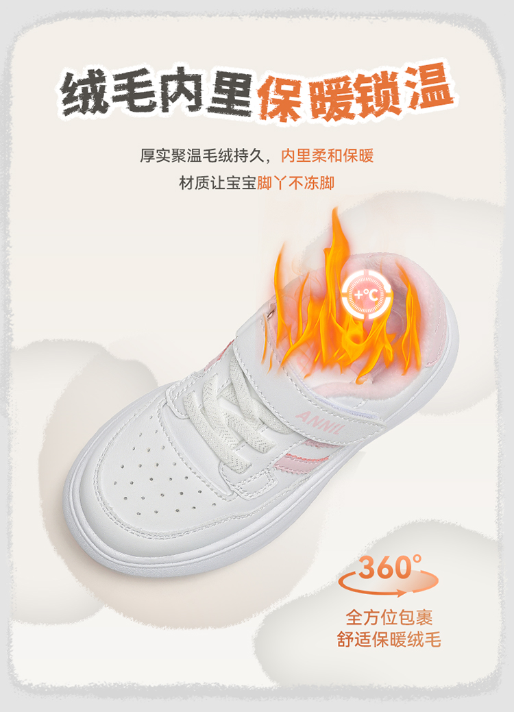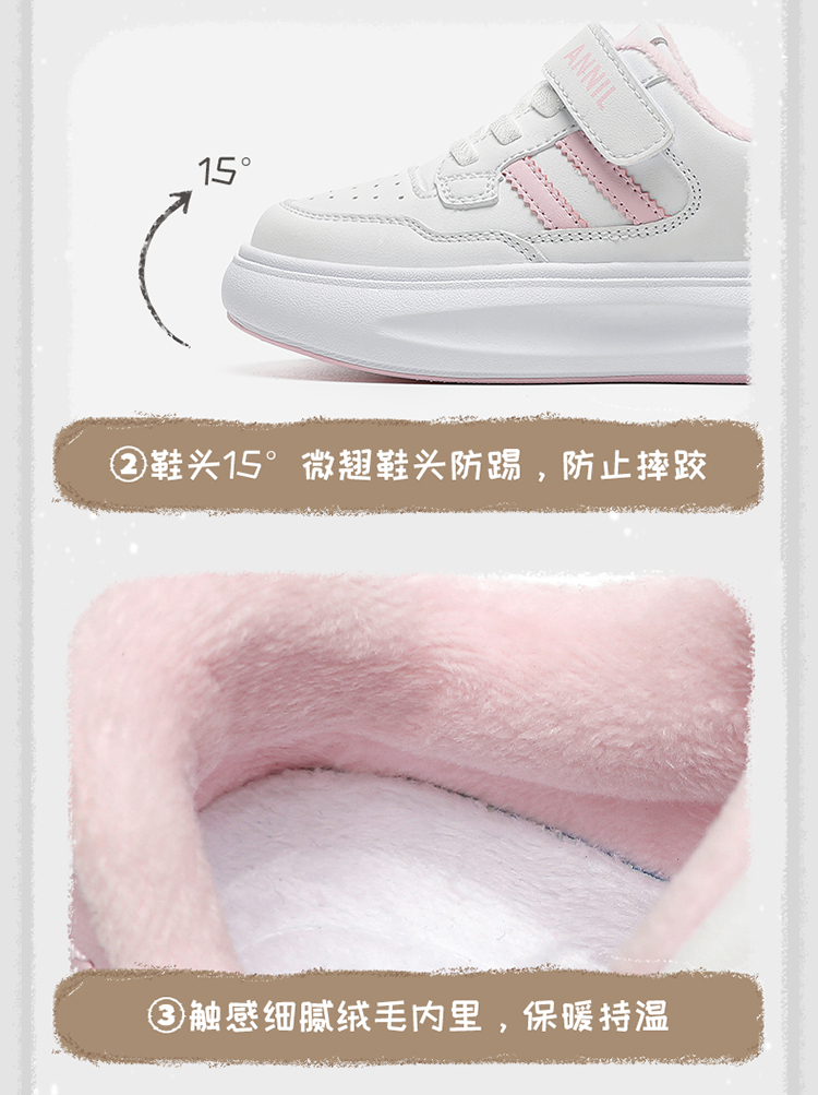 ANNIL/安奈儿儿童运动鞋冬季水晶绒加厚保暖棉鞋男女童同款HM4404144