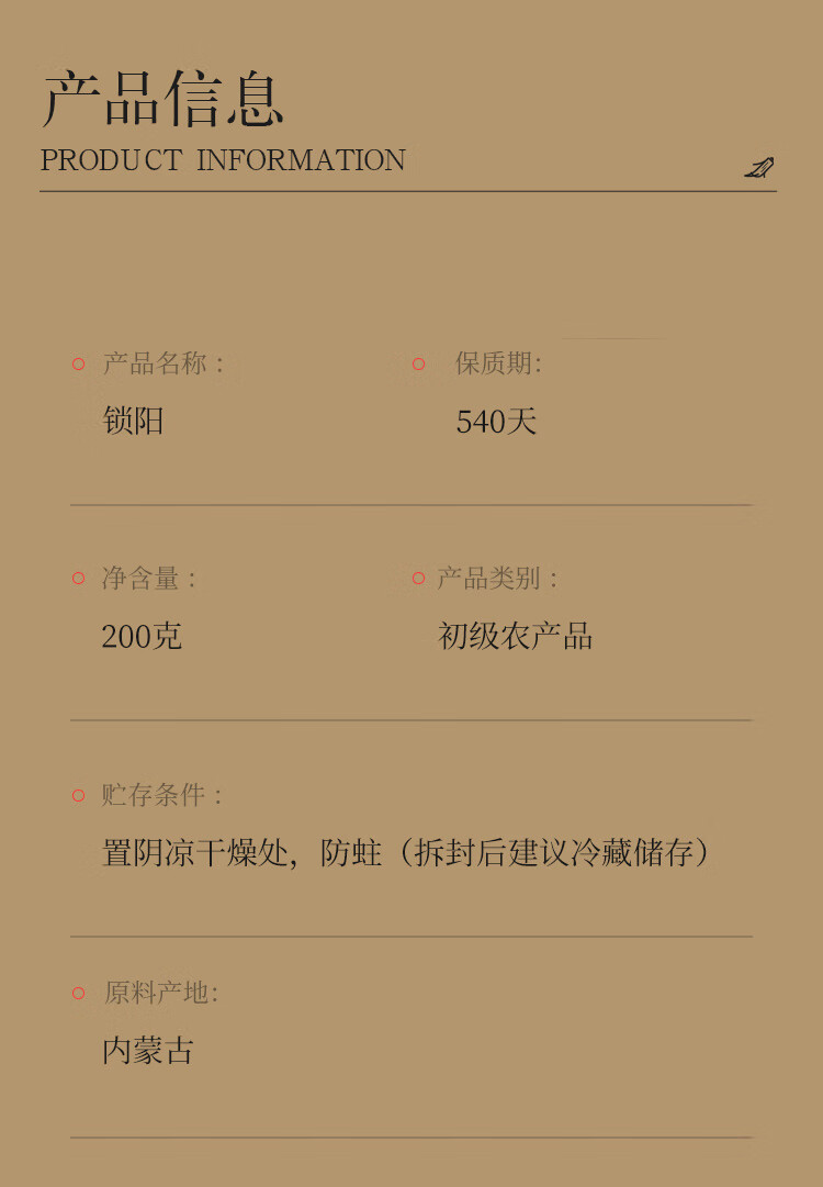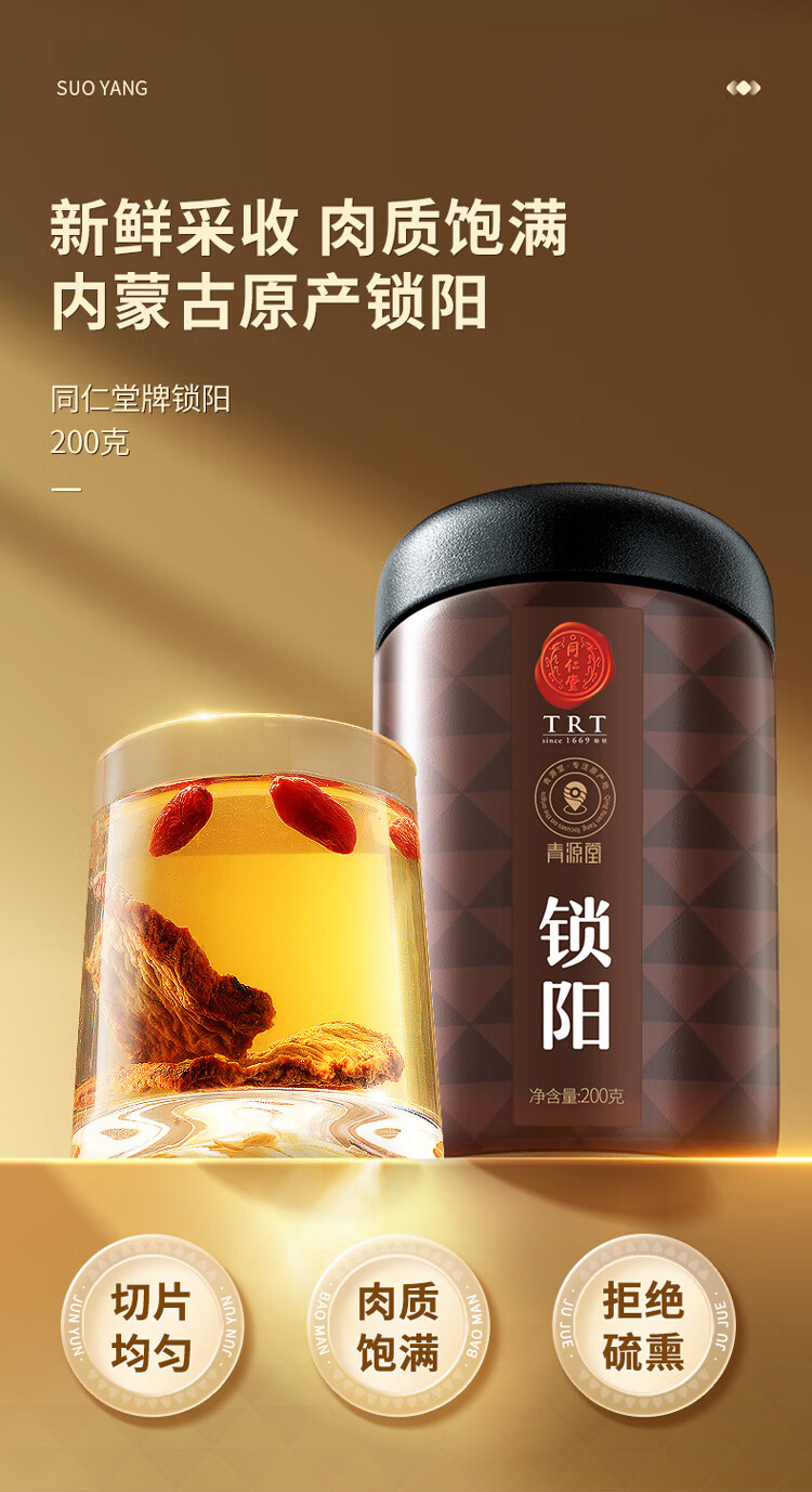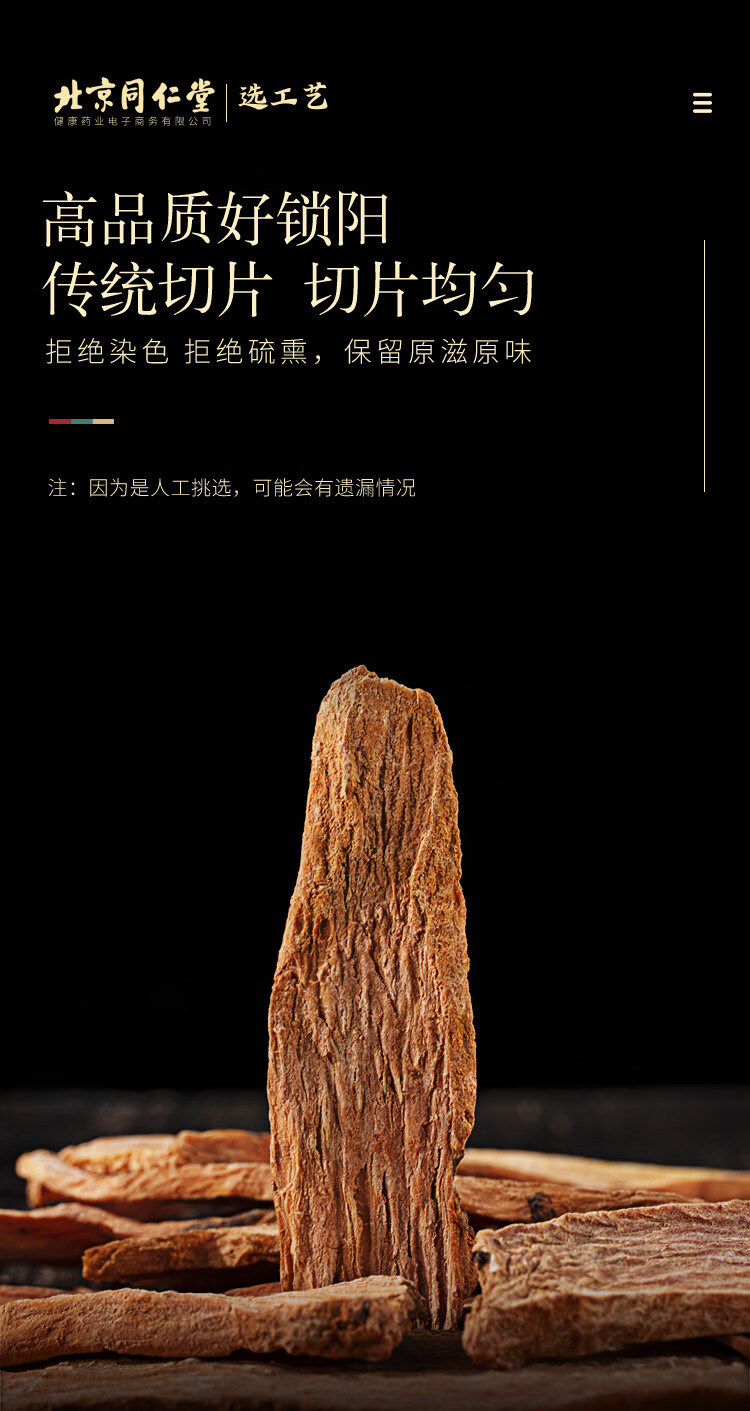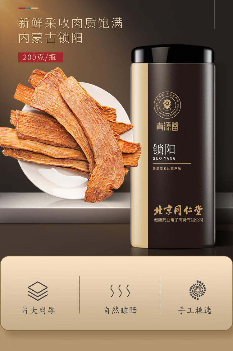 【正宗同仁堂品牌】北京同仁堂 青源堂 金锁阳200g 内蒙古阿拉善 新鲜采收 肉质饱满 切片均匀 拒绝熏硫 SY