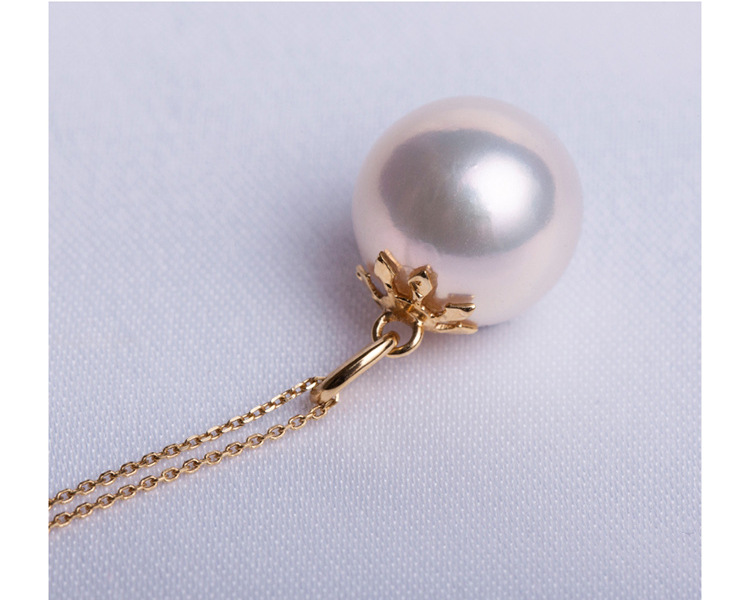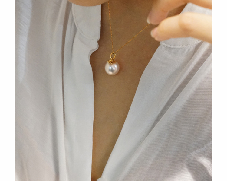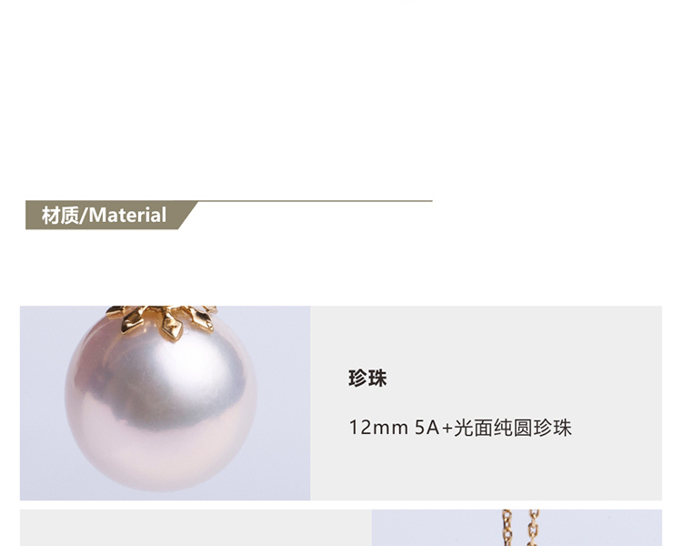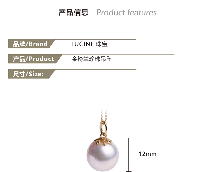 LUCINE 金铃兰18K黄金珍珠吊坠12mm母亲节礼物复古简约大气送妈妈(不含链)