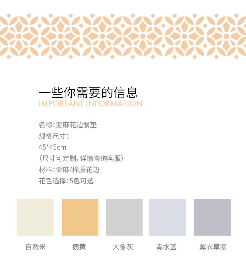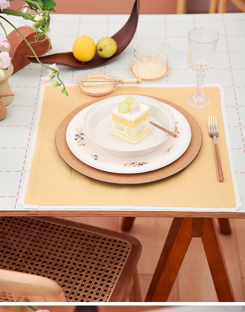 亚麻蕾丝西餐餐垫正方形餐垫口布