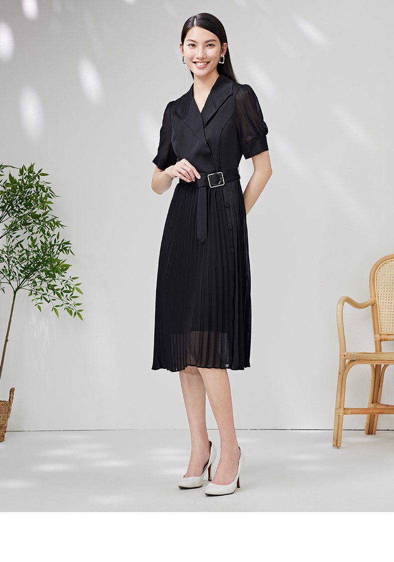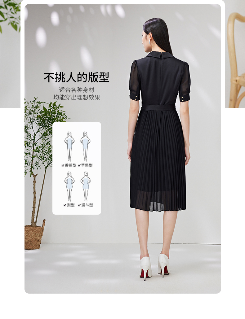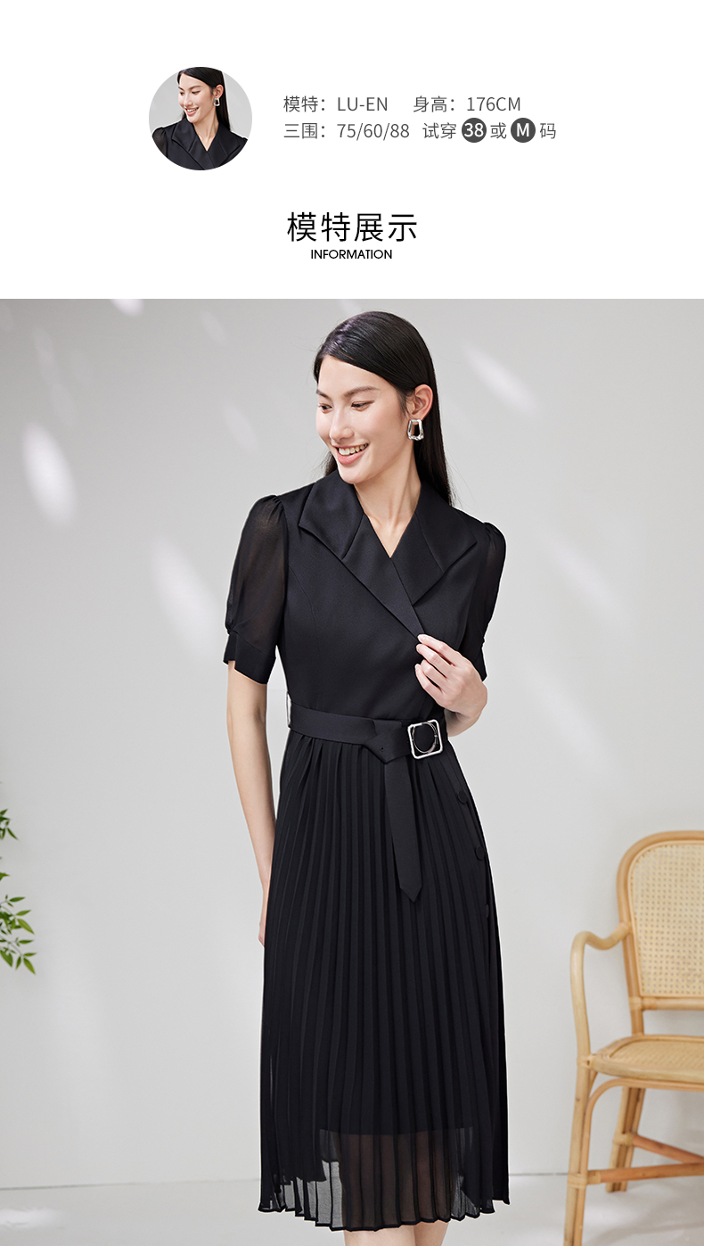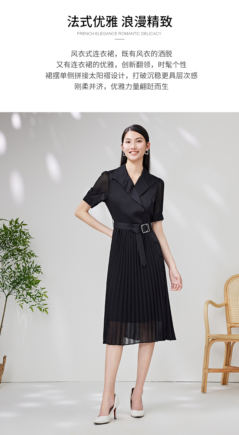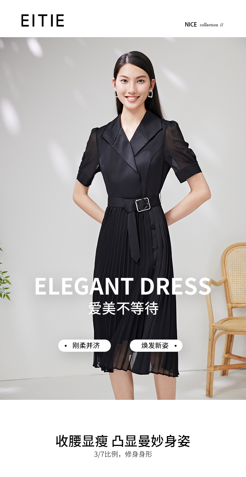 EITIE爱特爱夏季新款优雅收腰显瘦褶皱裙摆连衣裙7007750