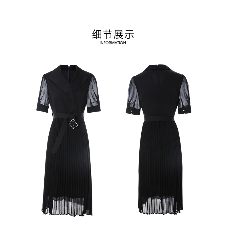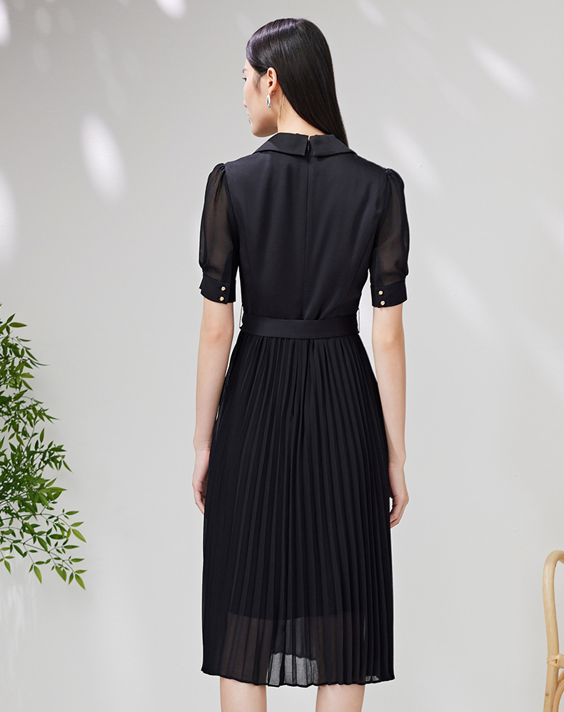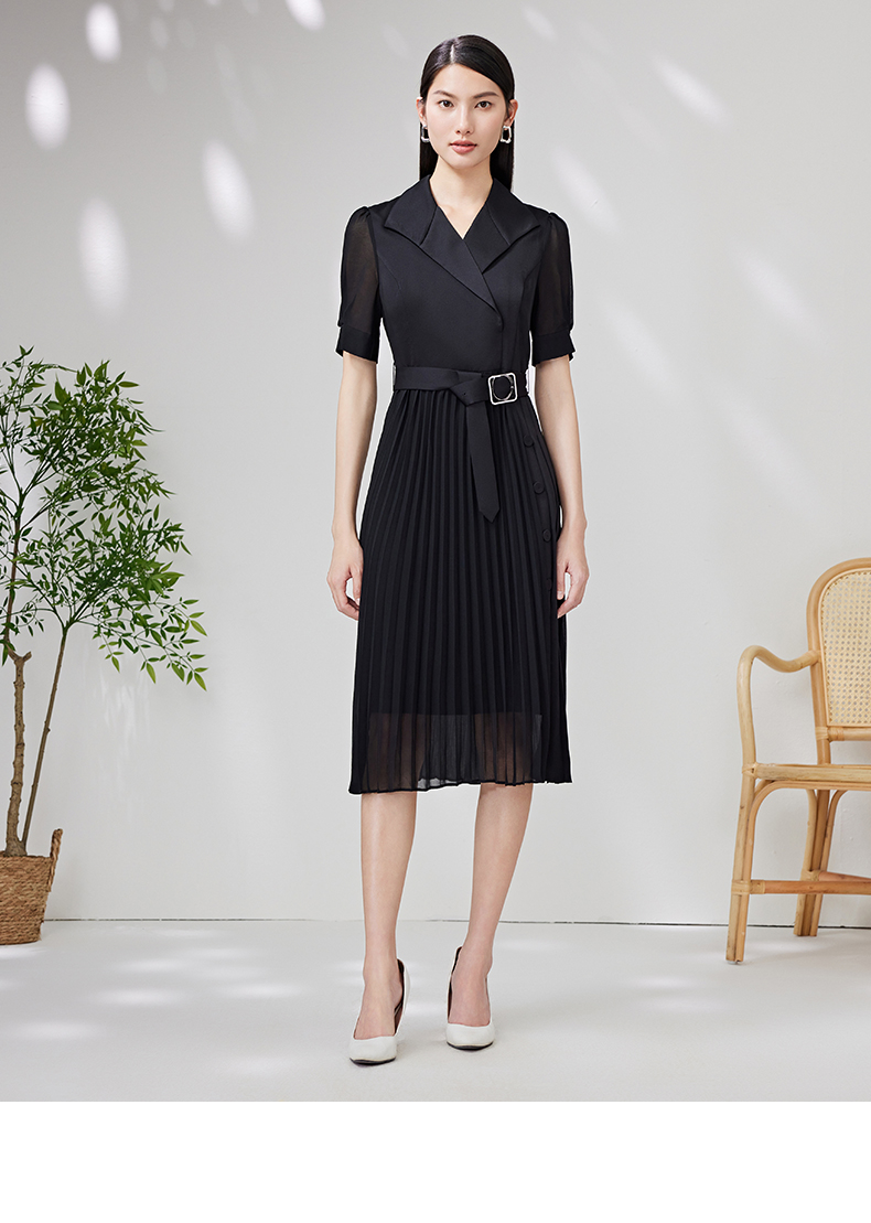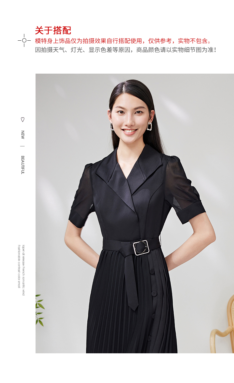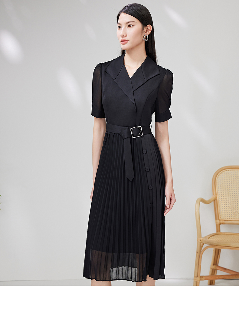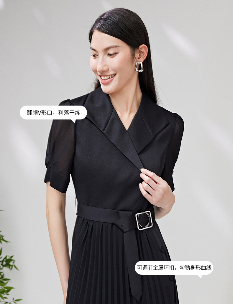EITIE爱特爱夏季新款优雅收腰显瘦褶皱裙摆连衣裙7007750