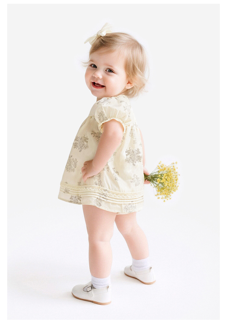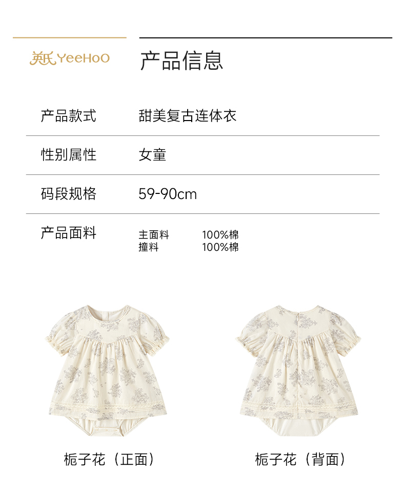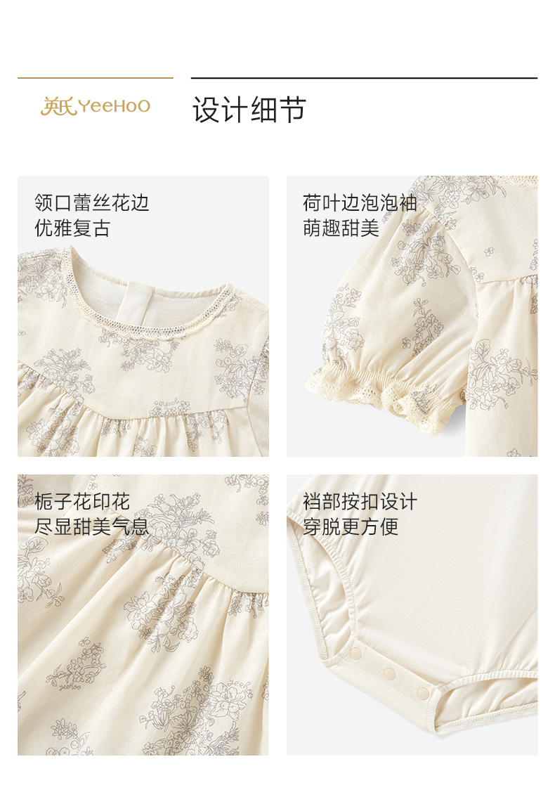【商场同款】英氏婴儿衣服夏季女童纯棉连体衣新泡泡袖连体裙裆哈