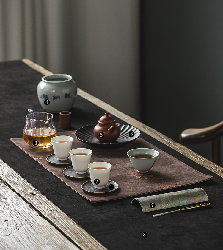 茶香记陶泥银斑描金一叶知秋圆形杯垫瑞鹤方形杯垫杯托茶道零配