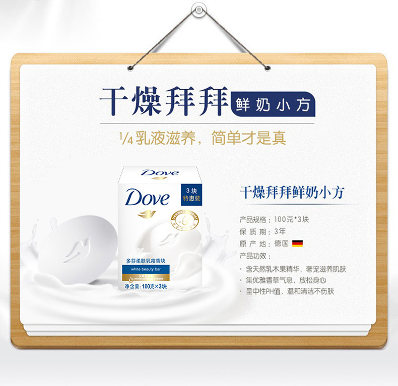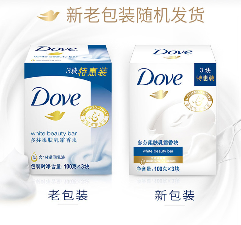 【品牌直发】多芬90g*3保湿清洁进口香皂牛奶女肥皂洗手洗脸沐浴洗澡皂