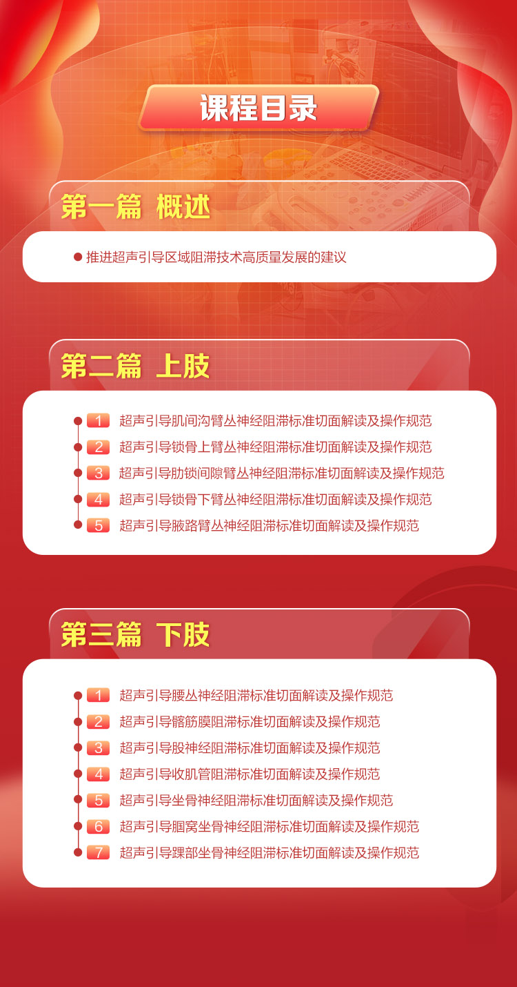 1.手把手教你如何获取想要的图像界面:课程详细解读了超声引导下的四肢神经阻滞的12个标准切面,让学习者能够清晰掌握每一个操作细节,确保手术过程的精确性。