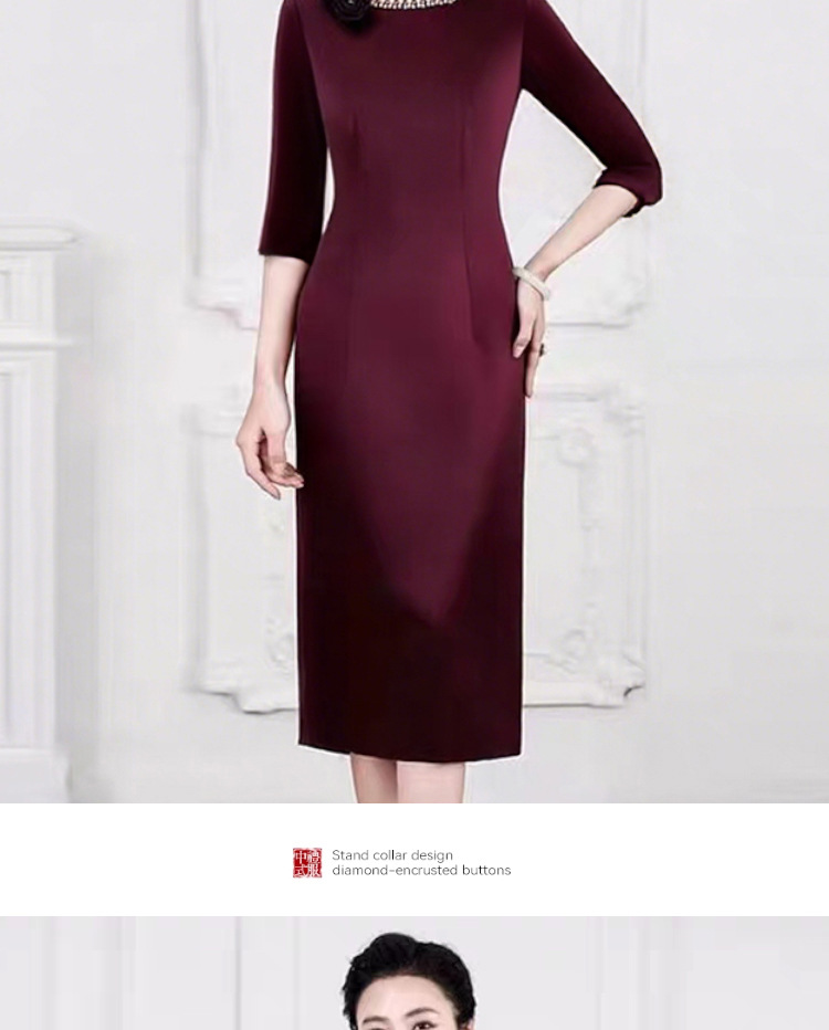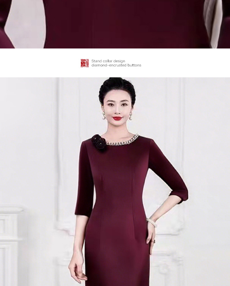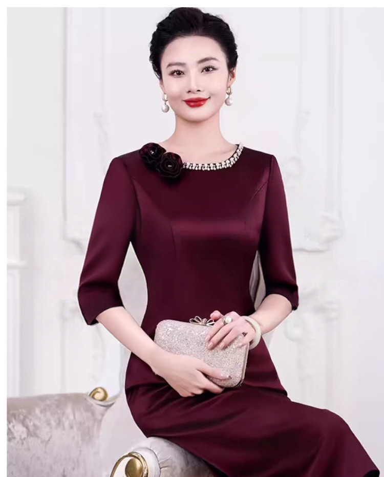 C65年轻丈母娘喜婆婆婚宴装连衣裙女秋季新款旗袍婚礼妈妈礼服裙女