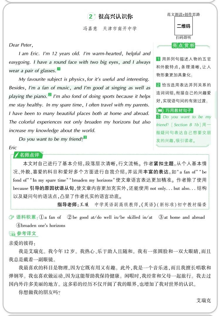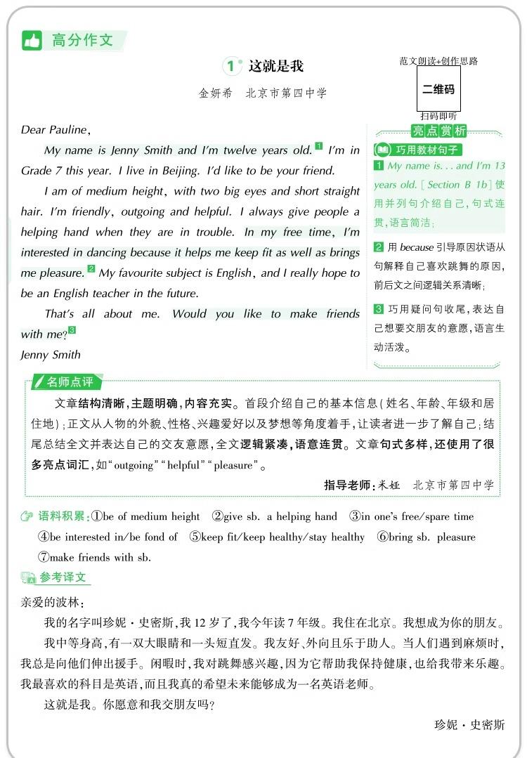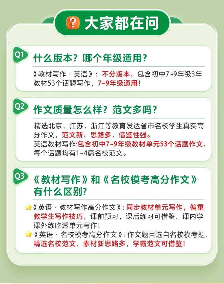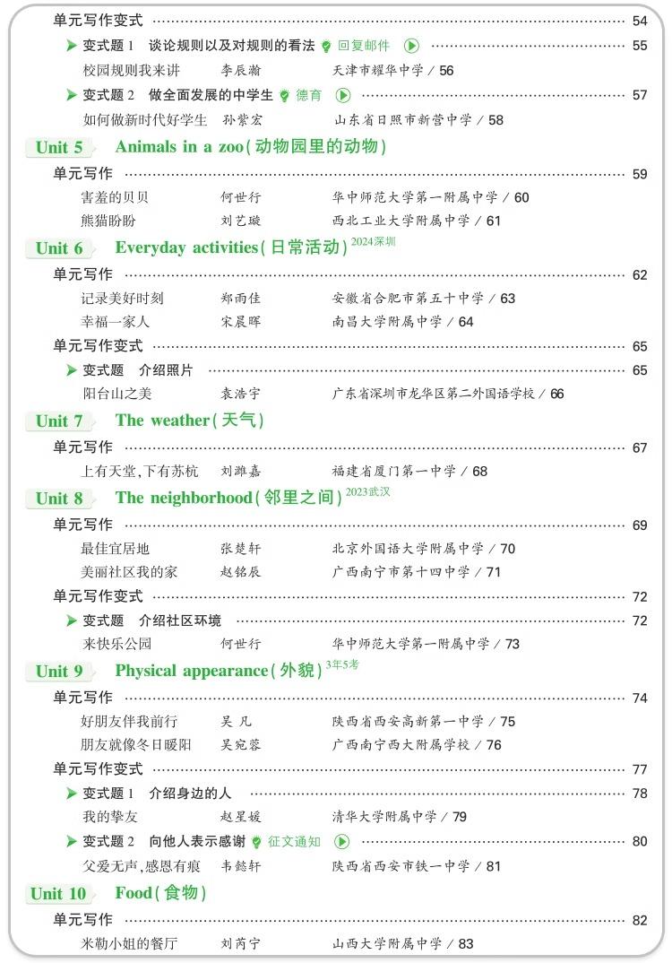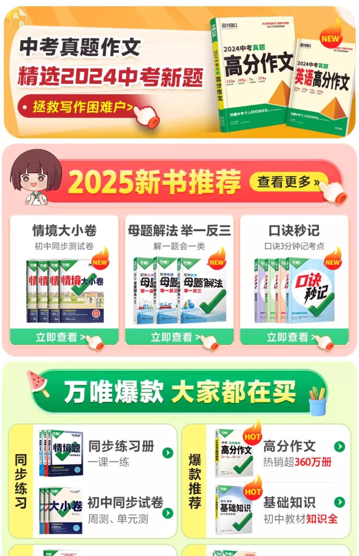 2025万唯中考初中英语名校满分作文同步中学生教材*写作范文