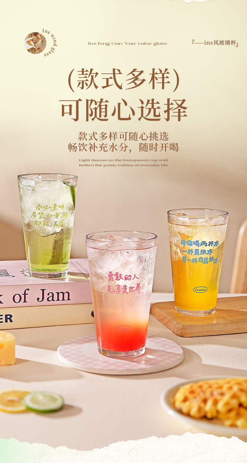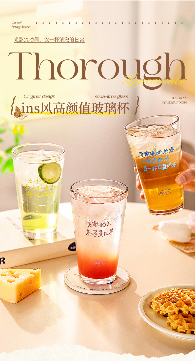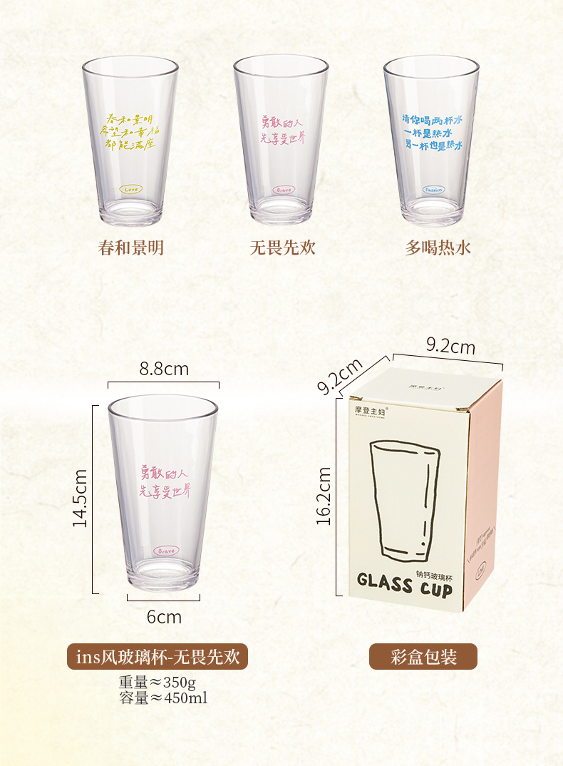 摩登主妇玻璃杯咖啡杯子家用喝水杯女生高颜值牛奶杯果汁杯啤酒杯