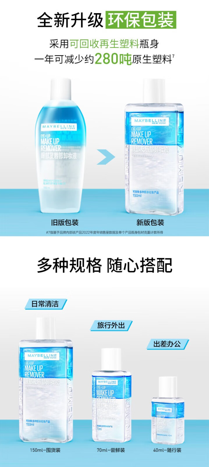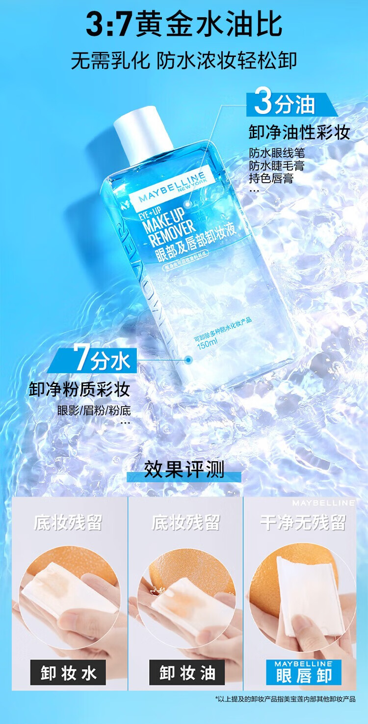 【9.9热卖榜】美国美宝莲Maybelline眼部及唇部卸妆液40ml