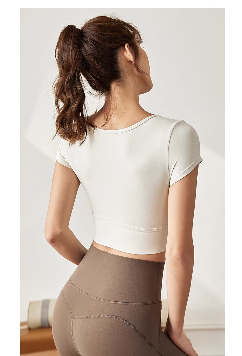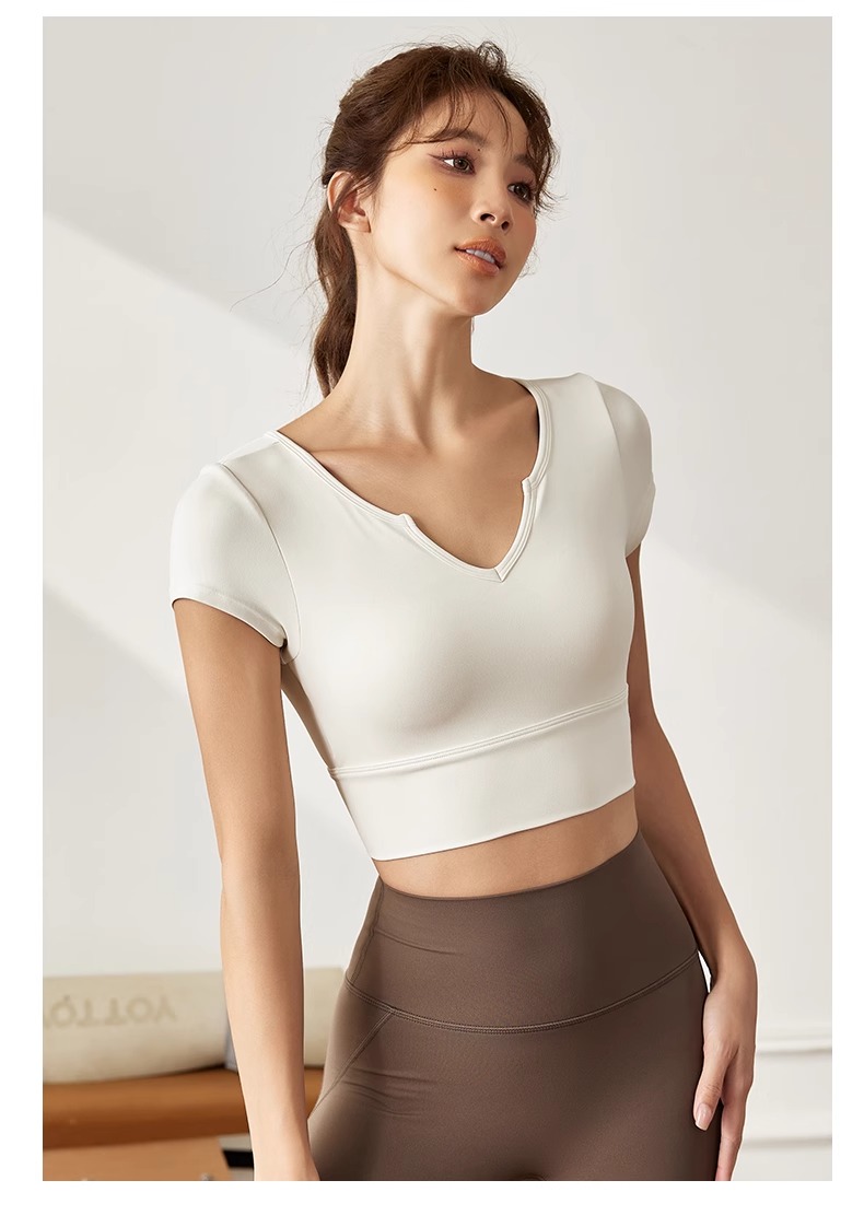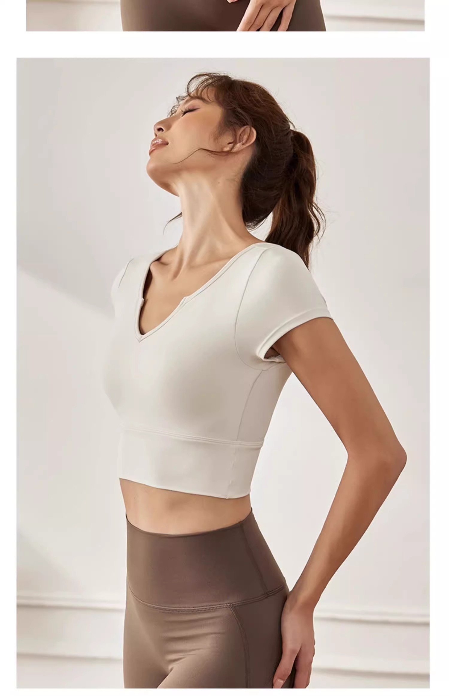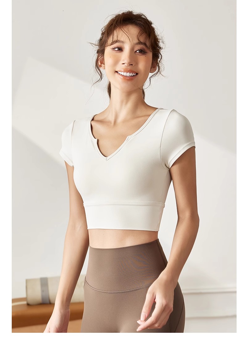 跃牌【轻匀系列】NS裸感瑜伽服短袖带胸垫性感V领健身背心运动T恤女TXB1440